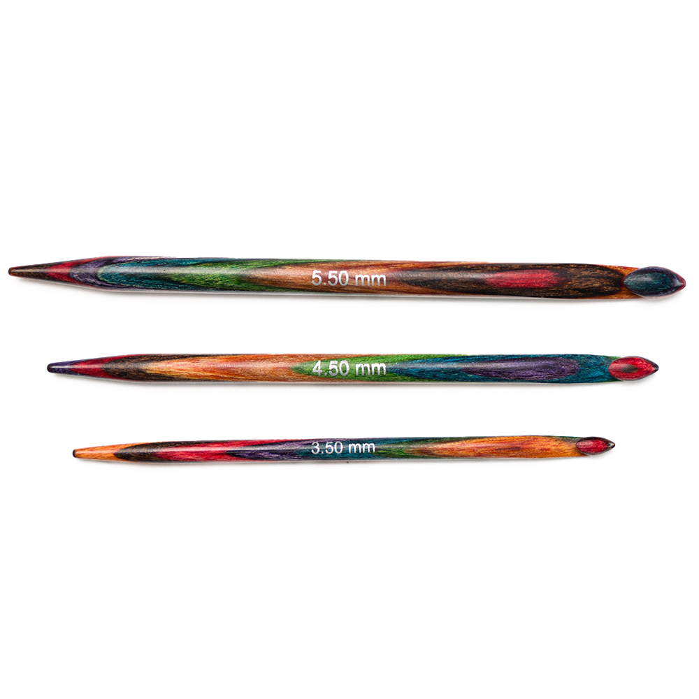 Ein Set mit drei Design-Holz Reparaturhaken in den Stärken 3,5 mm, 4,5 mm und 5,5 mm.