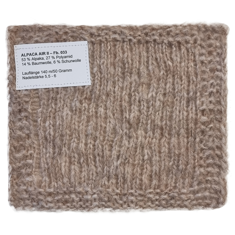 Alpaca Air II ist der perfekte Begleiter für alle, die es kuschelig und leicht lieben. Das Garn besteht aus einer hochwertigen Mischung aus Alpaka, Merinowolle und Baumwolle. Das Garn hat viel Volumen bei minimalem Gewicht – ideal für luftige, wärmende Strickteile mit edler Optik.