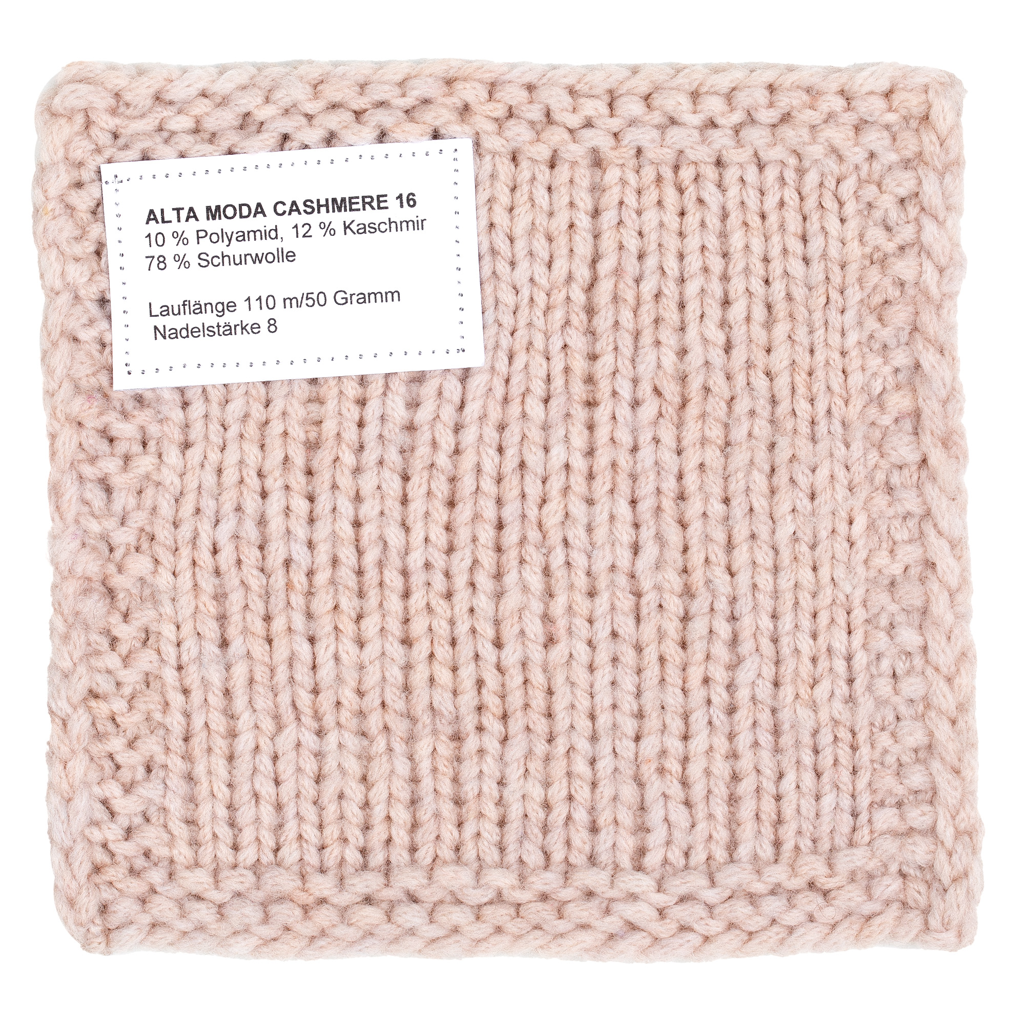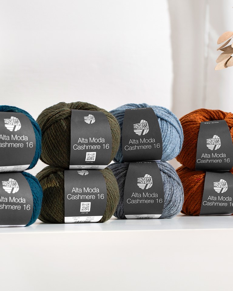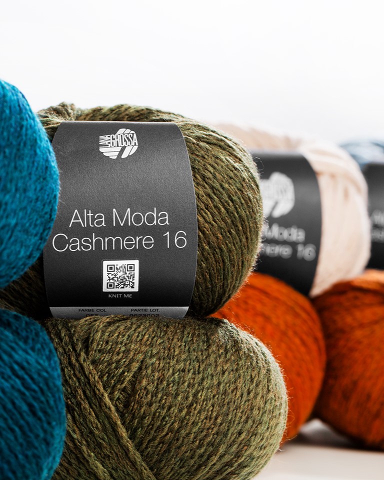 Alta Moda Cashmere 16 ist ein luxuriös weiches Garn mit edler Ausstrahlung – gefertigt aus einer feinen Mischung aus Kaschmir, Merinowolle und recyceltem Polyamid. Die innovative Kettenstruktur macht das Garn voluminös, leicht und besonders anschmiegsam, ideal für stilvolle Wintermode mit hohem Kuschelfaktor.