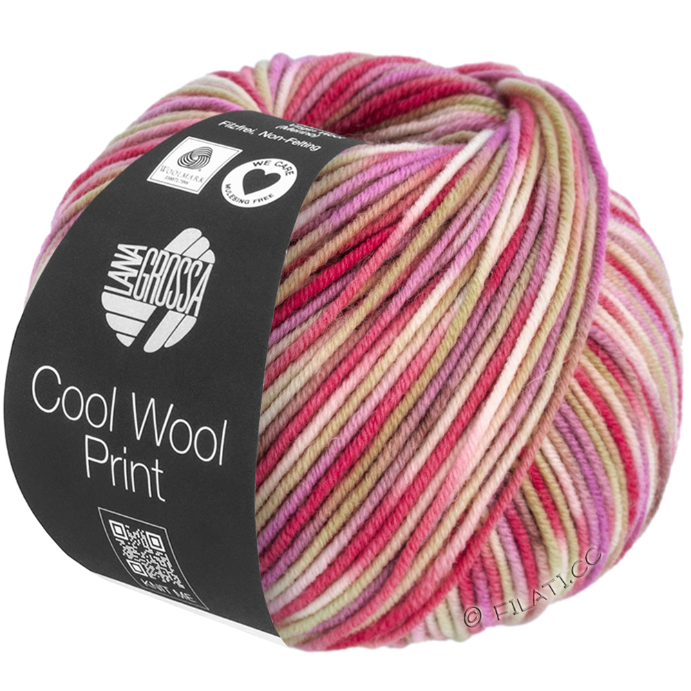 Cool Wool Print kombiniert die bewährte Qualität der extrafeinen Merinowolle mit kreativen Farbverläufen und Print-Effekten. Das Garn aus 100 % Schurwolle (Merino extrafine) ist angenehm weich, hautfreundlich und ideal für farbenfrohe Strickprojekte – ob Pullover, Tücher oder Kinderkleidung.