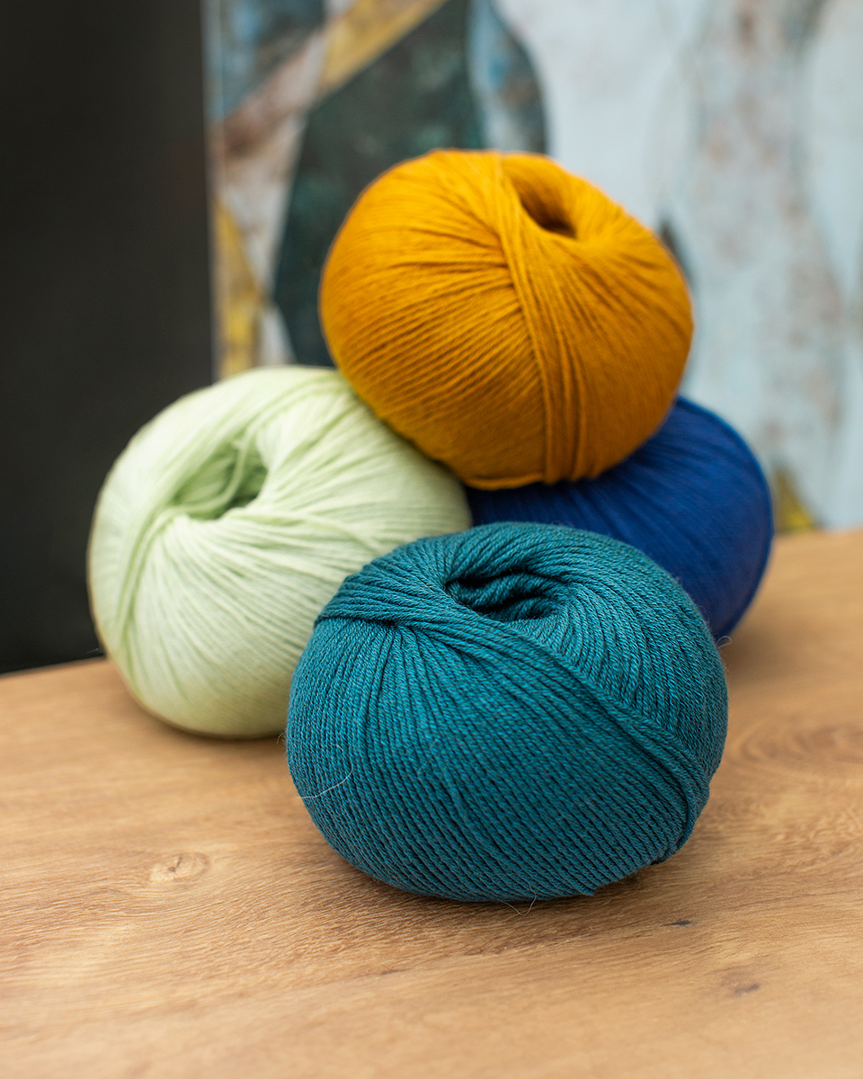 Klassisches Schurwollgarn mit Baumwolle.