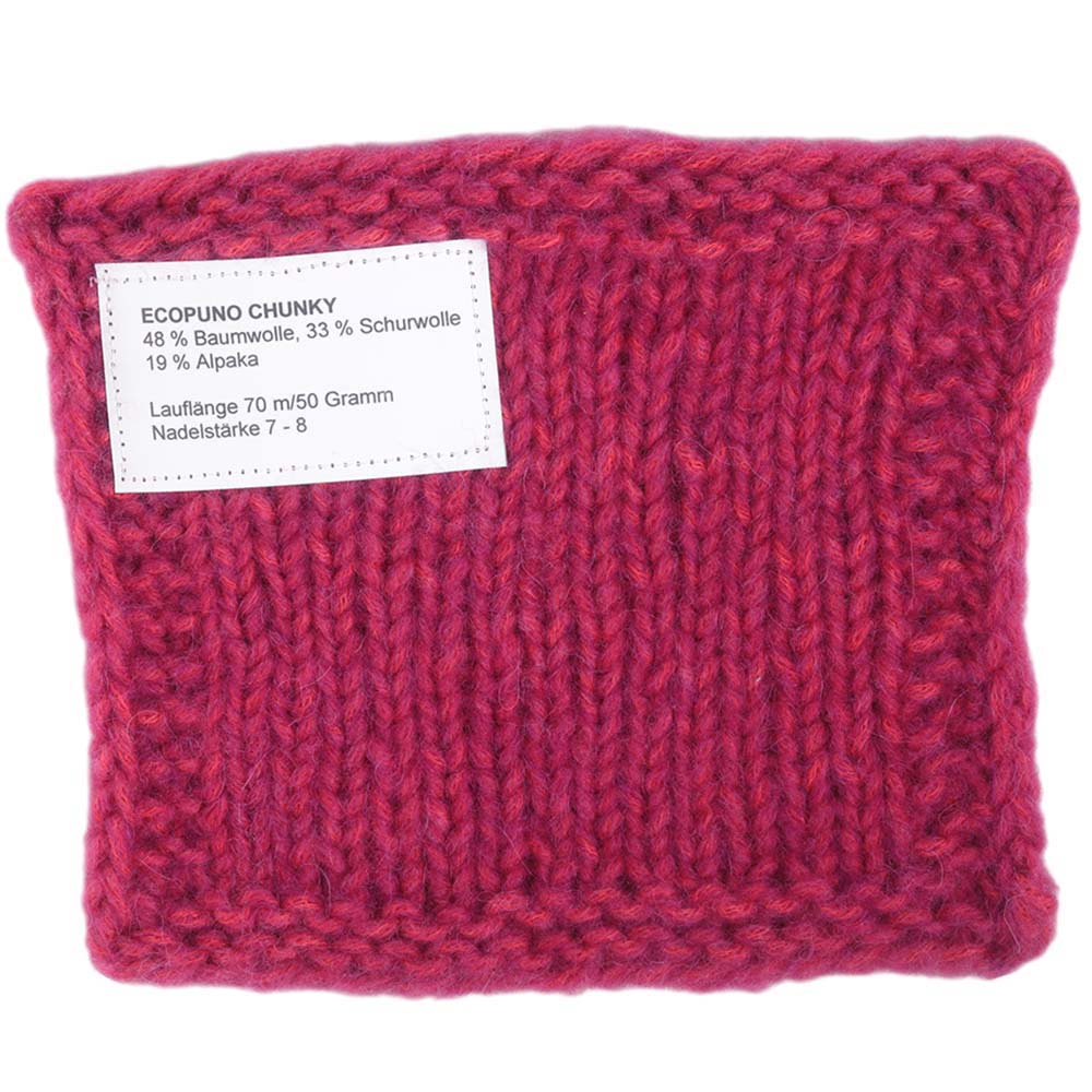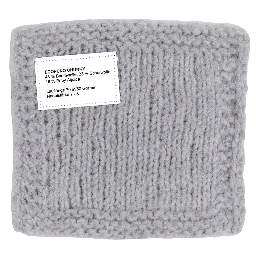 Ecopuno Chunky ist die voluminöse Variante des beliebten Ecopuno-Garns – kuschelig weich, angenehm leicht und schnell zu verarbeiten. Die Mischung aus Baumwolle, Merinowolle und Alpaka sorgt für ein besonders angenehmes Tragegefühl und ein edles, gleichmäßiges Maschenbild.