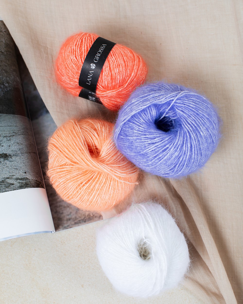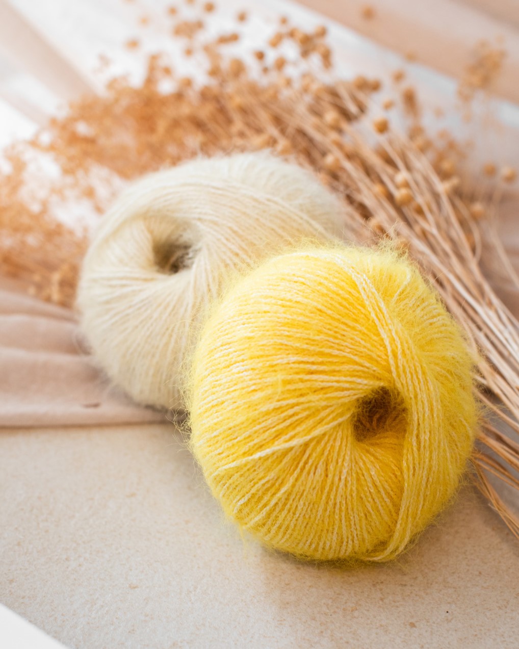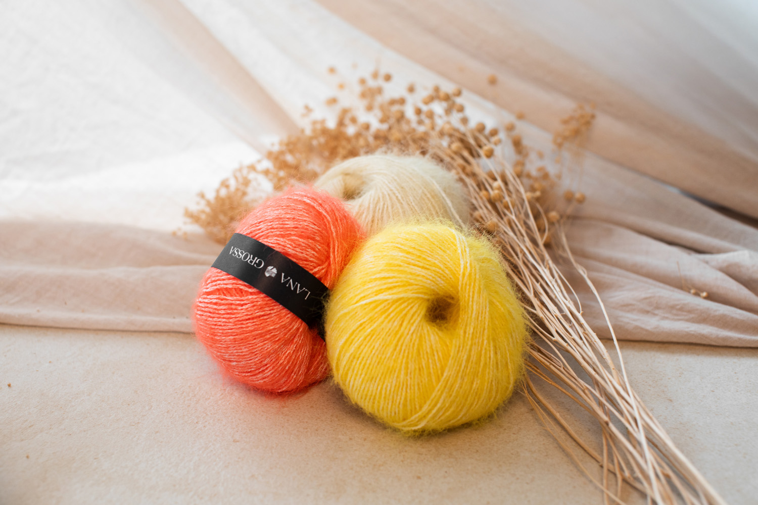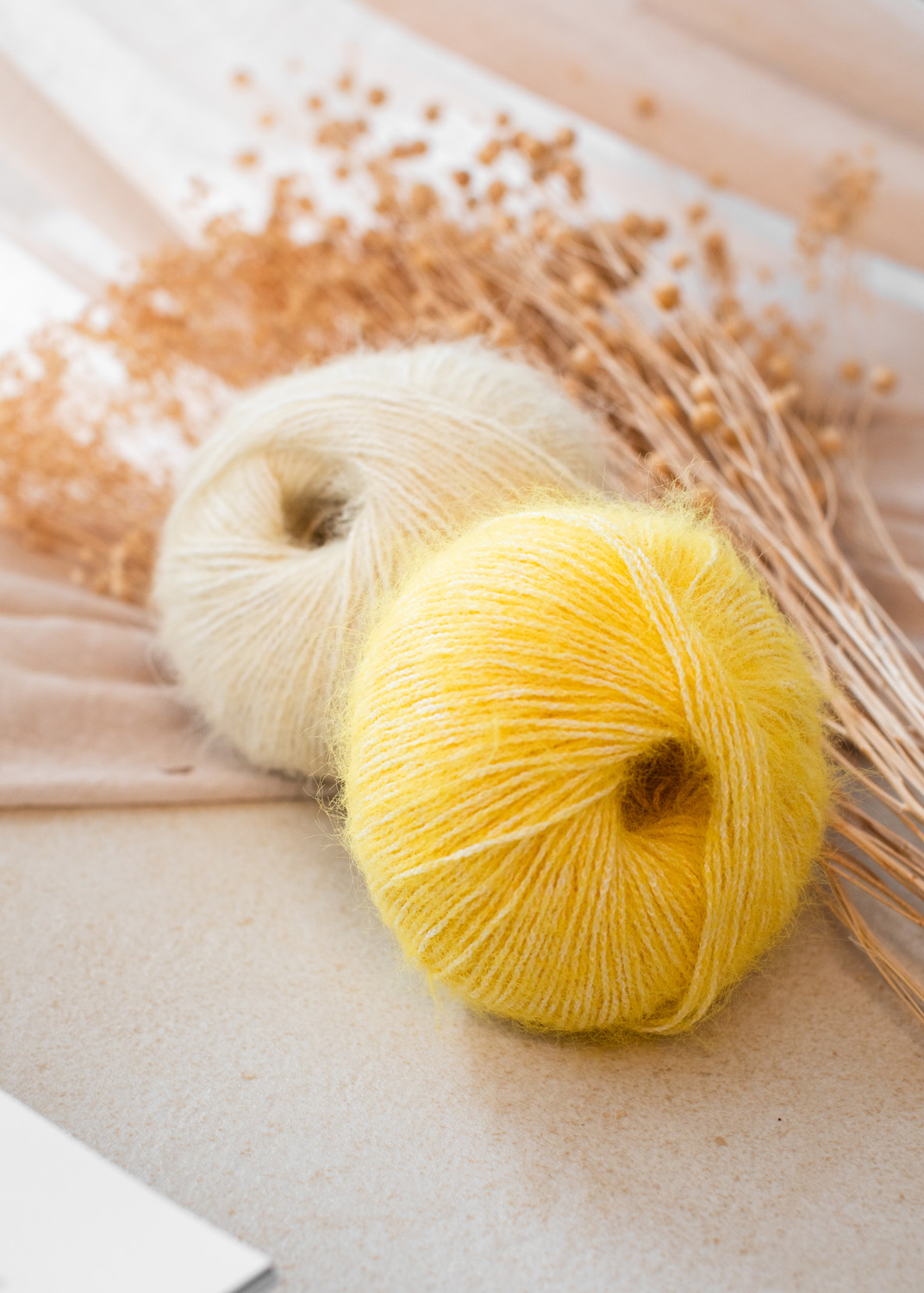 60 % Schurwolle Merino, 30 % Seide, 10 % Mohair