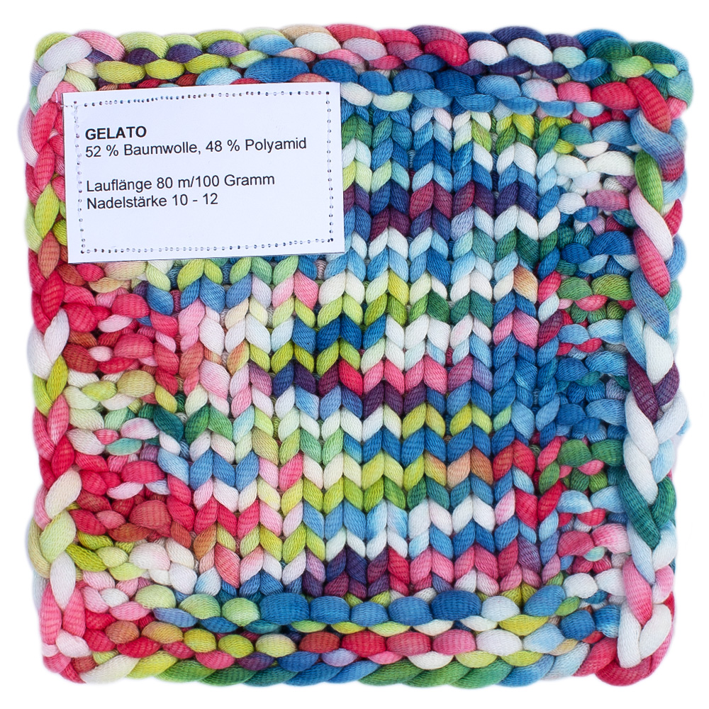 Gelato ist ein luftig-leichtes Sommergarn mit zartem Volumeneffekt. Die innovative Kombination aus Baumwolle und Polyamid verleiht dem Garn eine weiche, watteähnliche Haptik und ein einzigartiges Maschenbild mit sanfter Oberfläche.