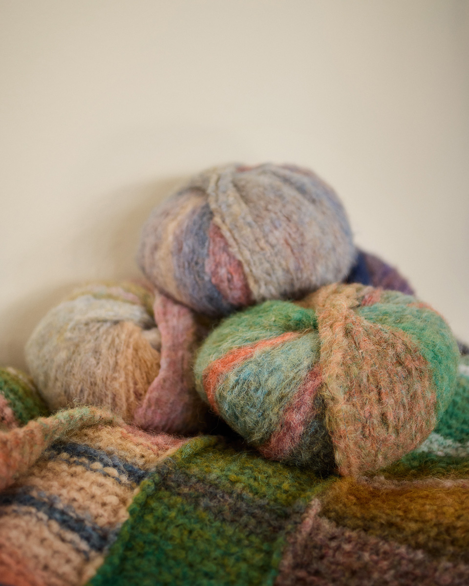 Voluminöses Alpakagarn mit Effektstruktur im farbenfrohen Ringelmix.