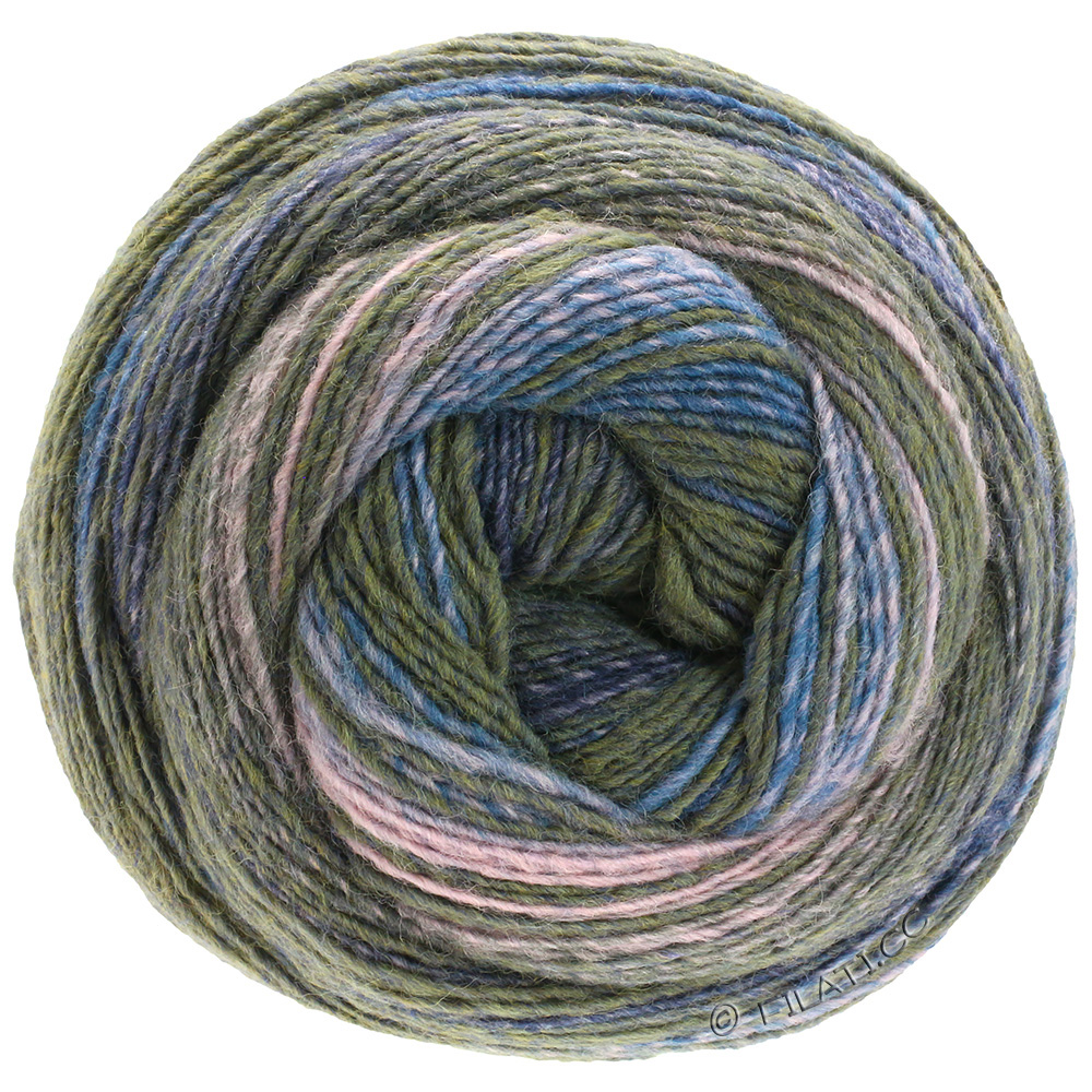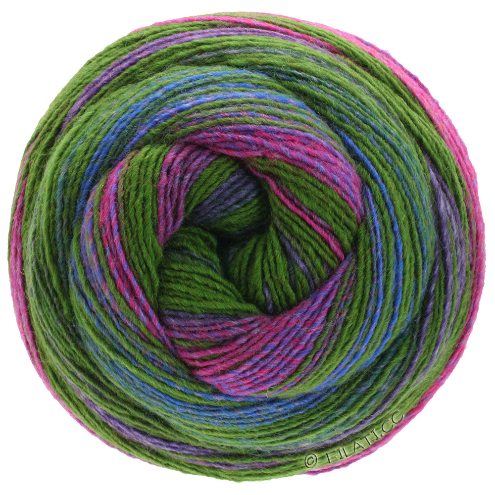 Leicht gedrehtes Kammgarn mit bunten, harmonischen Farbverläufen, die von markanten Streifen durchbrochen werden