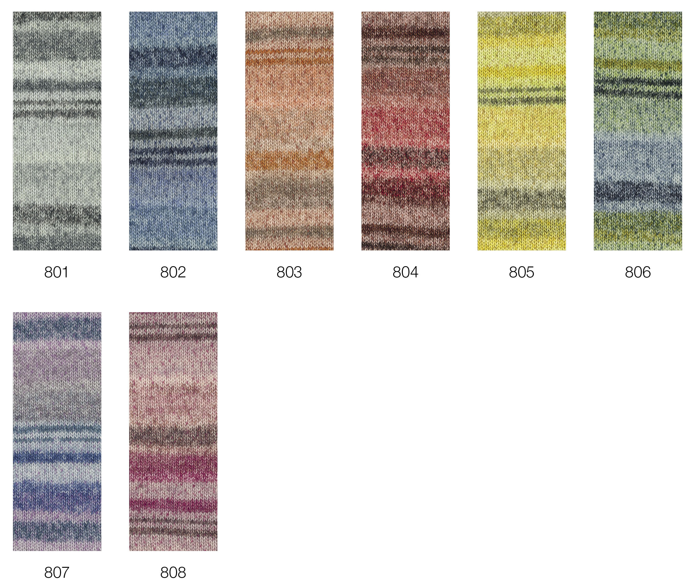 48 % Schurwolle Merino, 8 % Yak, 36 % Viskose, 8 % Nylon