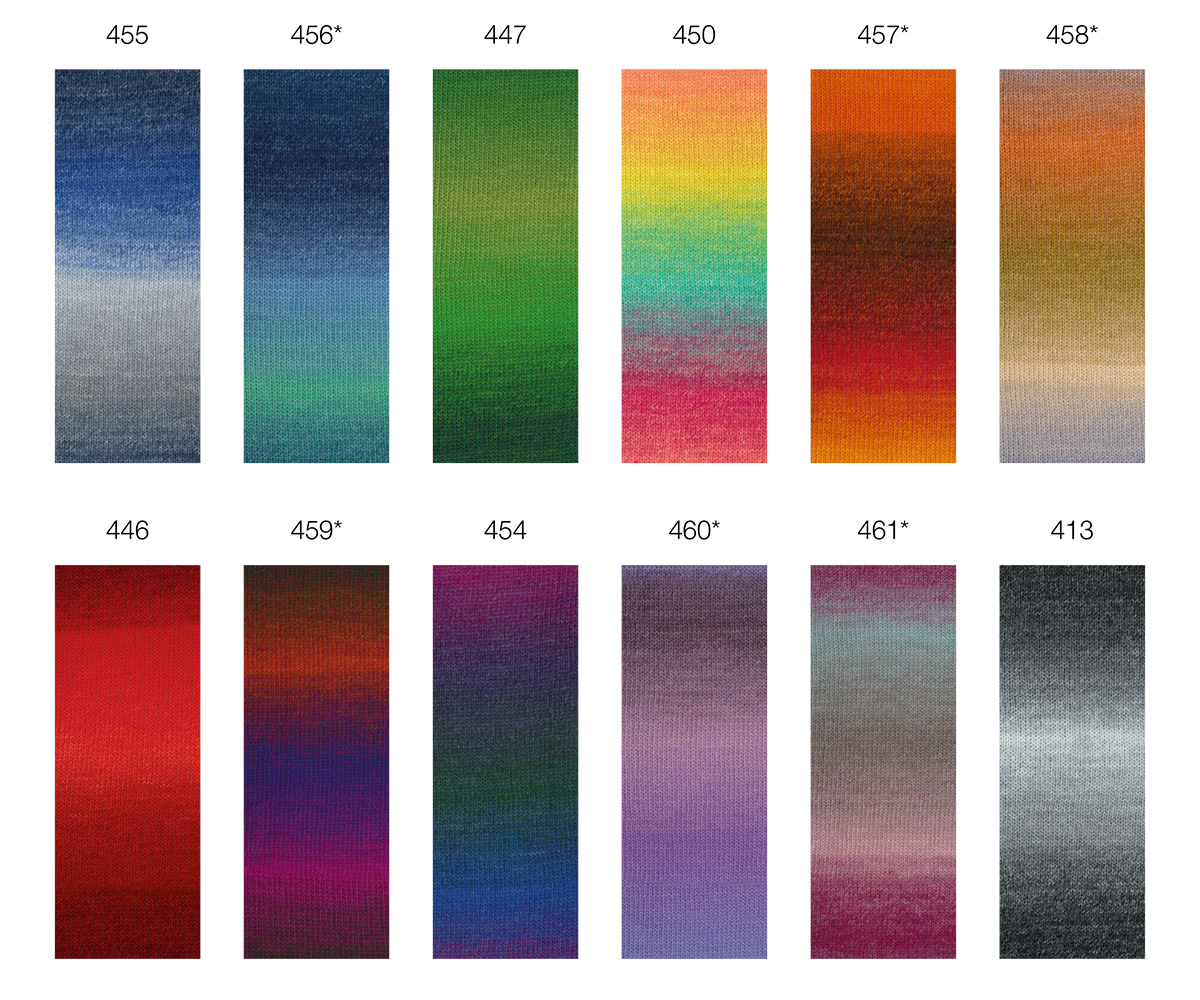 57 % Schurwolle Merino, 20 % Mohair, 23 % Polyamid