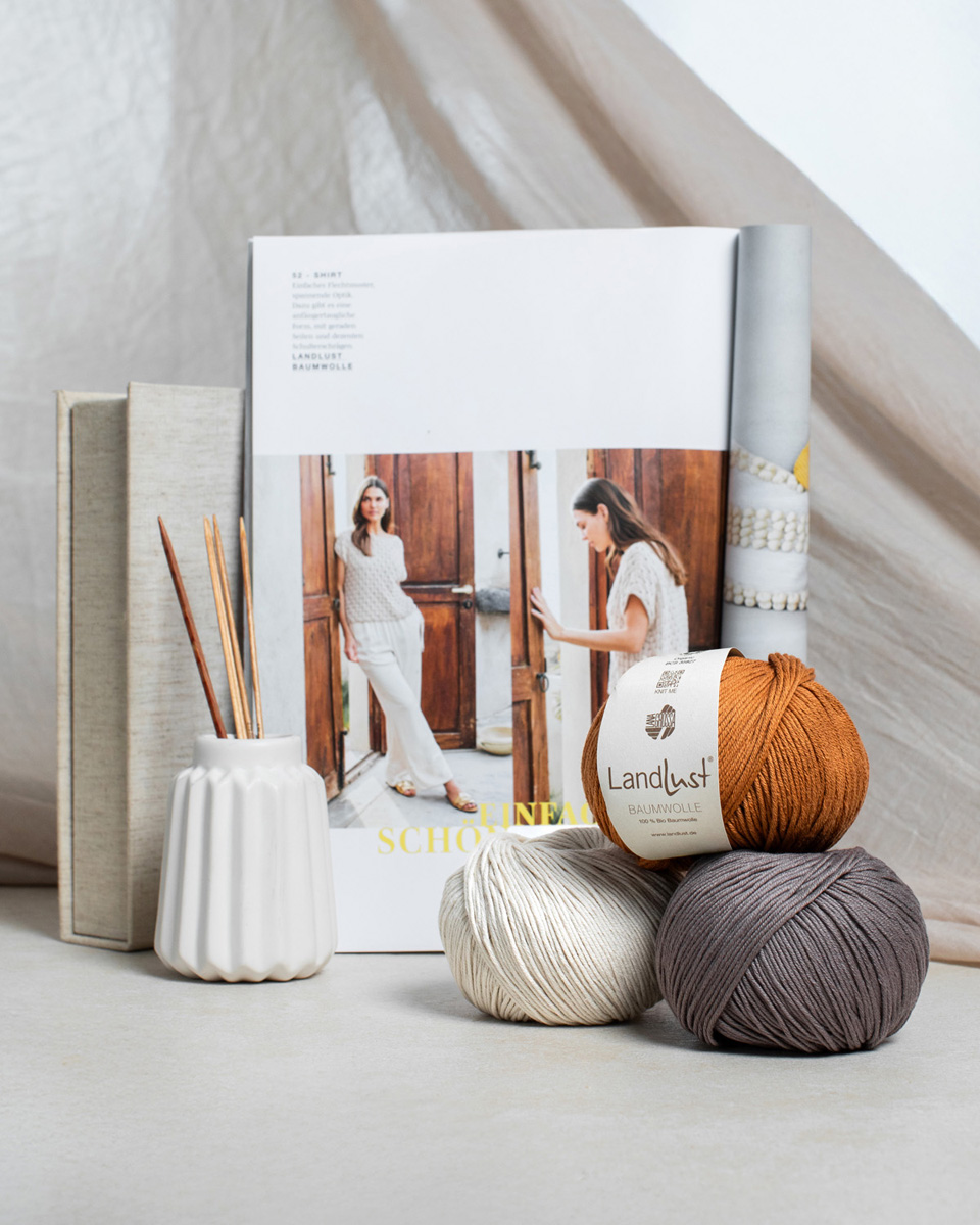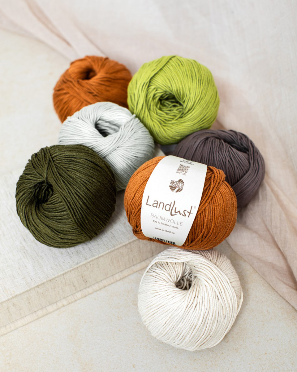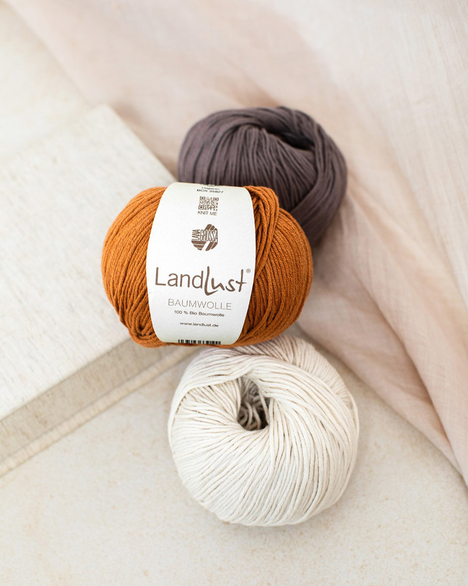 Landlust Baumwolle ist ein natürliches, weiches Garn aus 100 % Bio-Baumwolle, das in Zusammenarbeit mit dem Landlust Magazin entwickelt wurde. Es hat ein angenehm, griffiges Maschenbild.