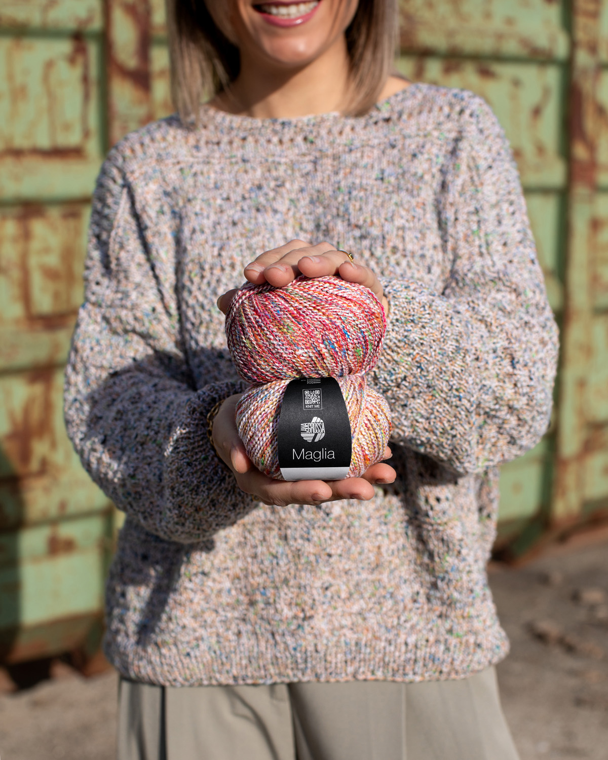 Maglia ist ein modernes Sommer-Tweedgarn aus weicher Baumwolle, das mit einem bunten Effektgarn verzwirnt ist. Dadurch entsteht ein lebendiges, strukturiertes Maschenbild mit dezenter Farbvielfalt – perfekt für Strickprojekte mit natürlichem Charakter und modischem Touch.