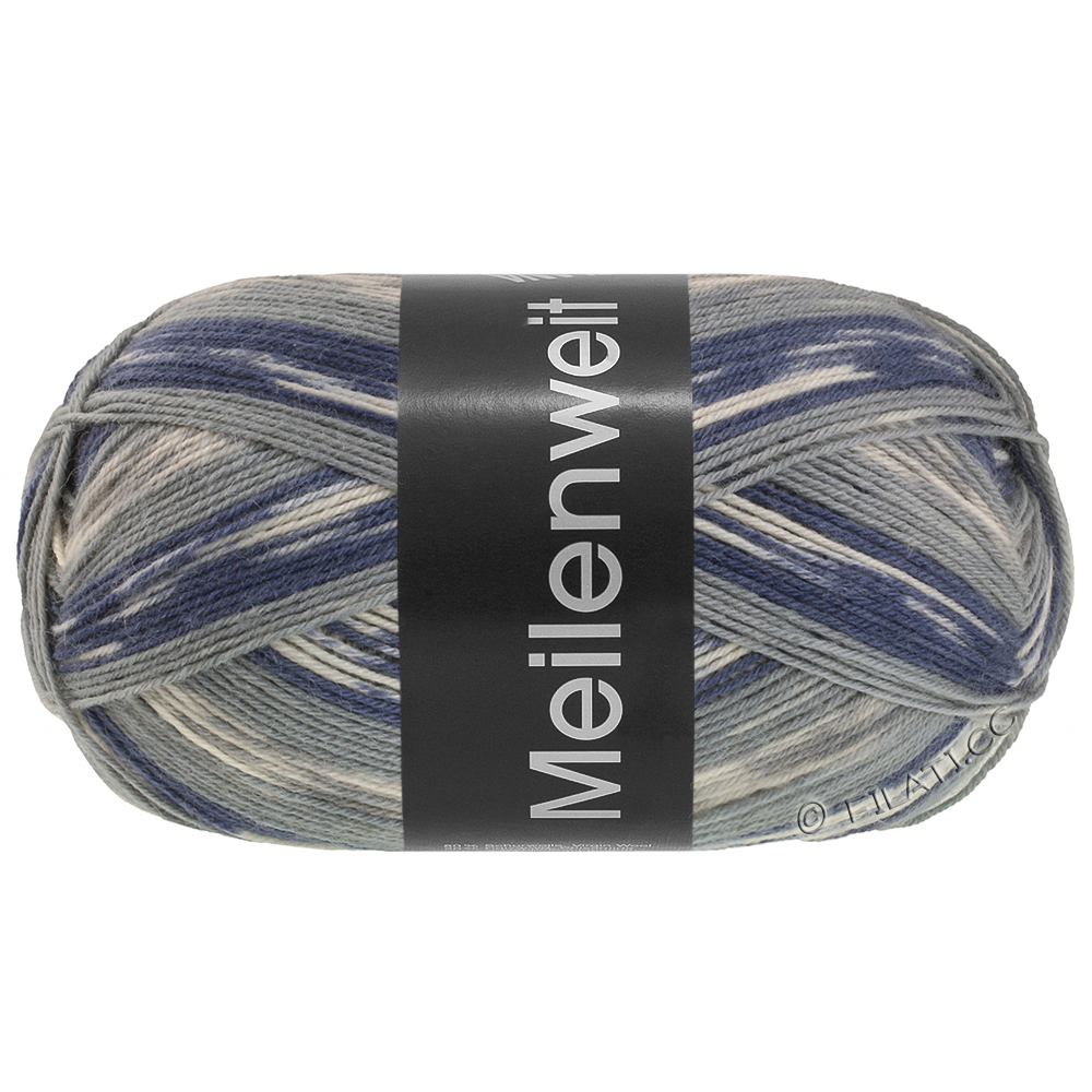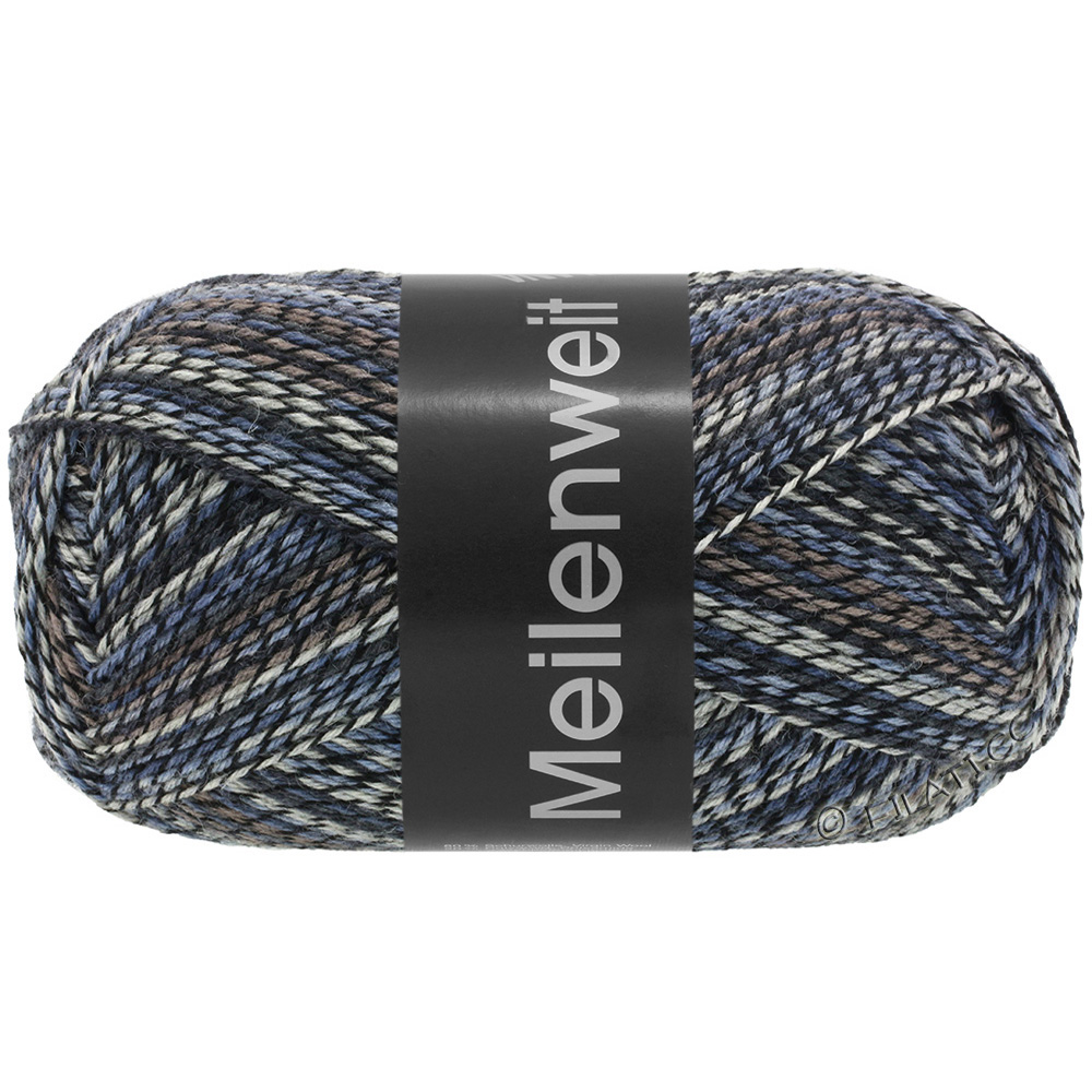 Lana Grossa Meilenweit 100 Black Denim Mix steht für trendige Sockenmode im coolen Jeans-Look.