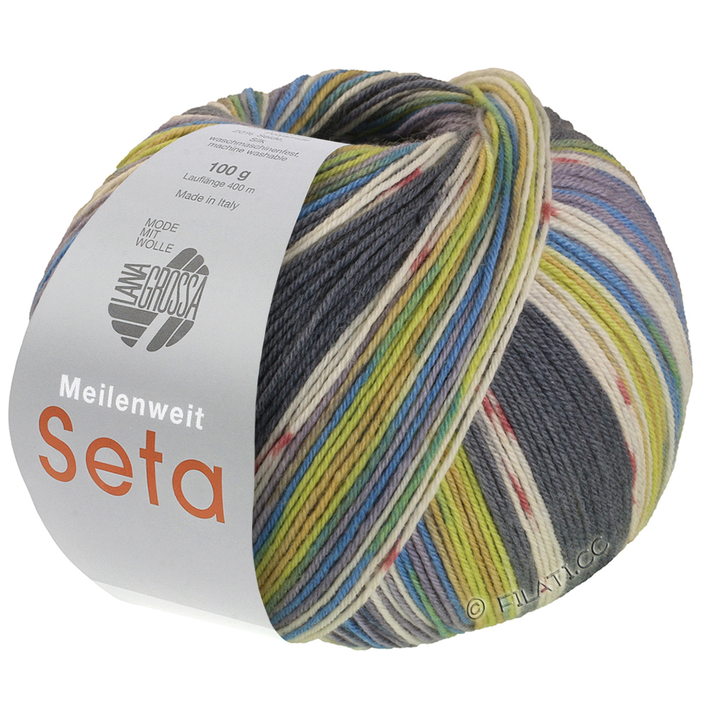 Lana Grossa Meilenweit 100 Seta Giappone verbindet edle Seide mit weicher Schurwolle – für ein luxuriöses Strickgefühl. Das hochwertige Sockengarn besticht durch einen feinen Glanz, angenehme Leichtigkeit und raffinierte Farbverläufe.