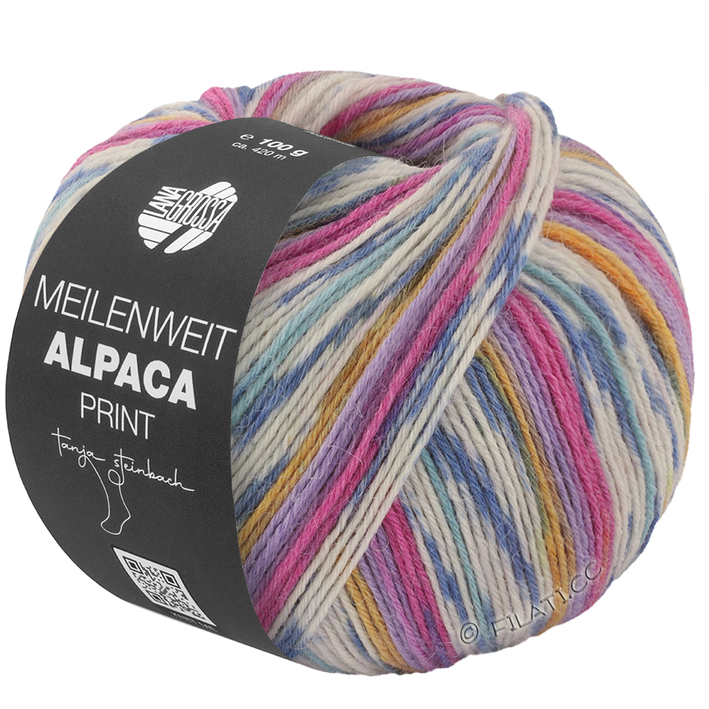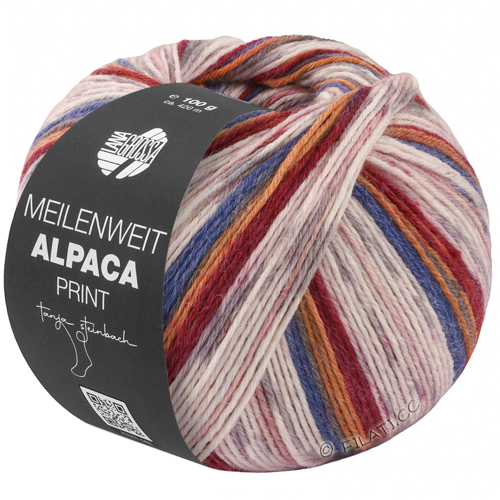 Lana Grossa Meilenweit Alpaka Print 6-fach vereint kuschelweiches Alpakagarn mit stilvollen Farbverläufen. Das 6-fädige Sockengarn ist besonders warm, strapazierfähig und angenehm auf der Haut.