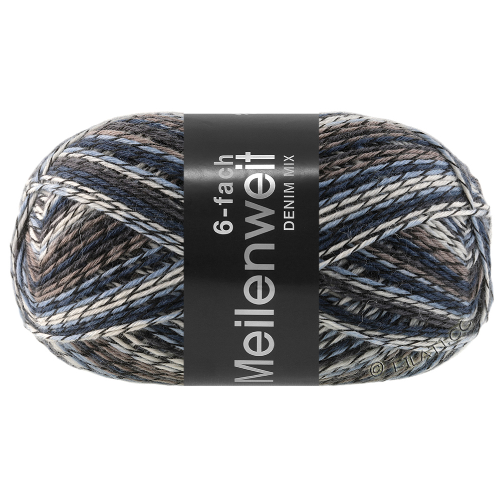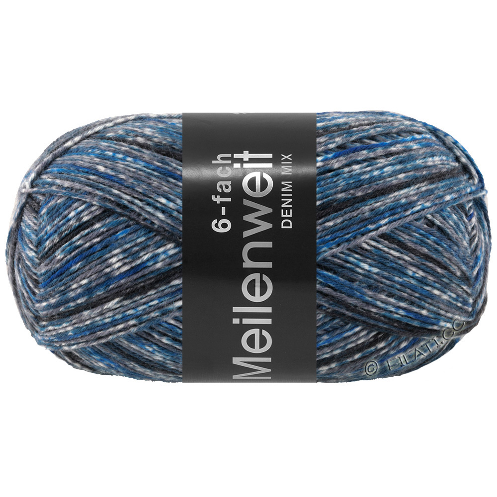 Lana Grossa Meilenweit 6-fach 150g Denim Mix kombiniert trendige Denim-Farben mit kuscheliger Garnqualität. Das 6-fädige Sockengarn aus Schurwolle und Polyamid ist besonders warm - deal für robuste Socken.