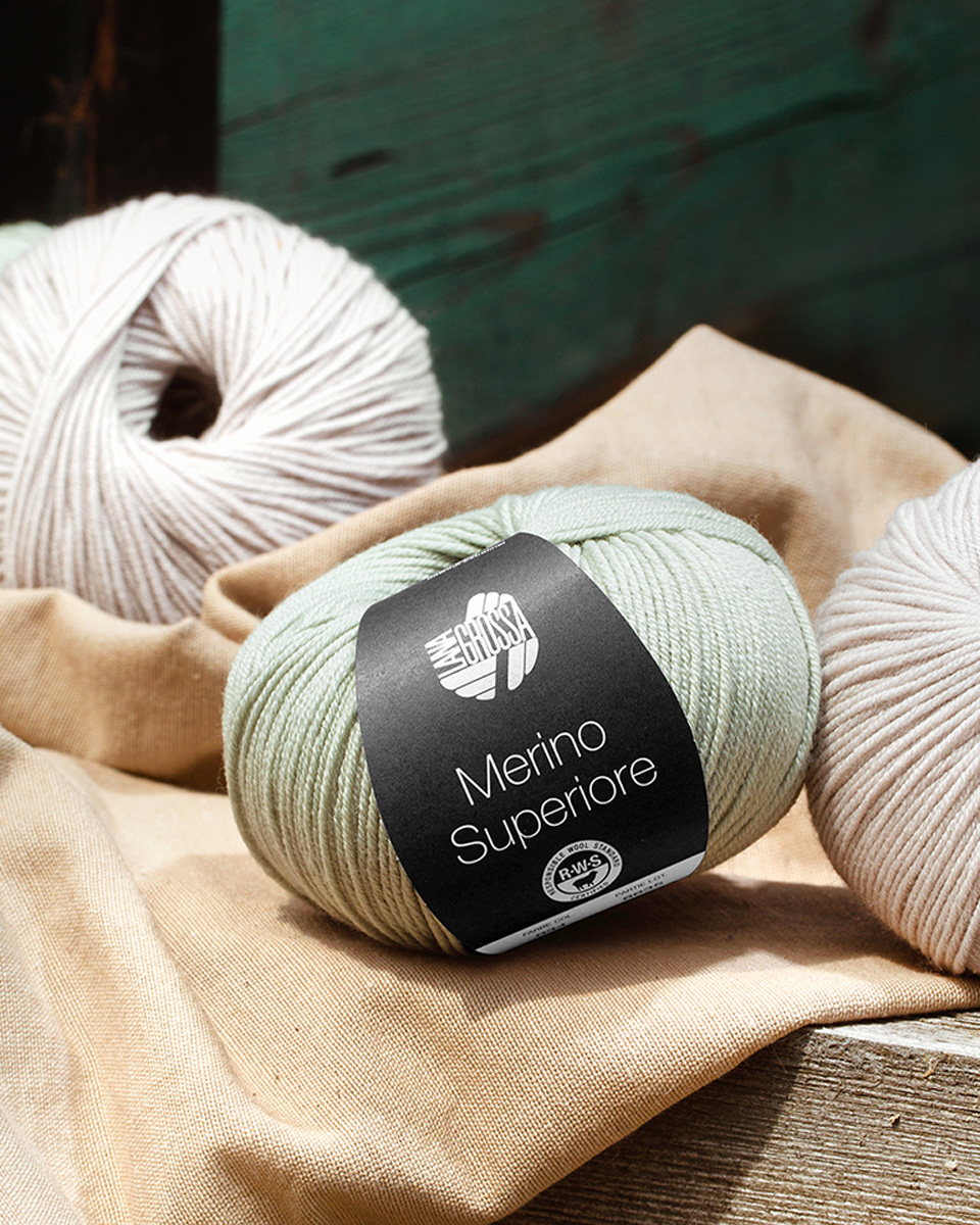 Merino Superiore ist ein luxuriös weiches Garn aus 100 % Merinowolle, das höchsten Ansprüchen an Komfort, Qualität und Eleganz gerecht wird. Die besonders feine Faser sorgt für ein seidig glattes Maschenbild, angenehme Wärme und ein edles Tragegefühl – perfekt für stilvolle Pullover, Jacken und Accessoires.