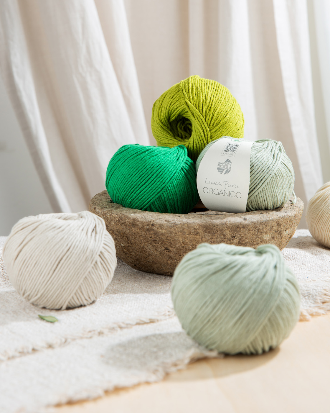 Organico ist ein reines Bio-Baumwollgarn, das sich durch seine weiche Haptik, natürliche Optik und hohe Hautfreundlichkeit auszeichnet. Das Garn ist GOTS-zertifiziert, umweltschonend hergestellt und ideal für nachhaltige Strickprojekte.