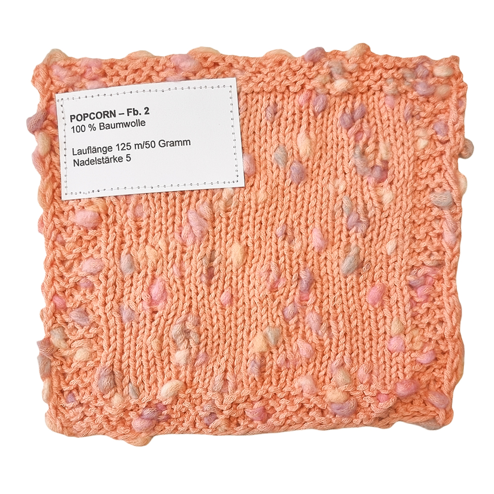Mit knuffigen Knötchen kreiert Baumwoll-Netzgarn POPCORN interessante Effekte, die zum Weiterstricken animieren. Das Konzept dieser Neuheit basiert auf Cassata, dem Bestseller aus dem letzten Winter. Erhältlich ist Popcorn in 16 interessanten Farben.