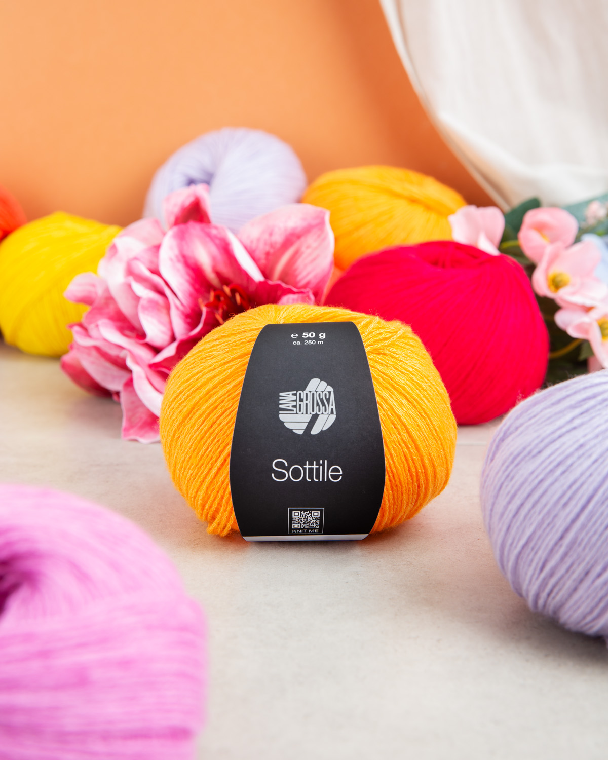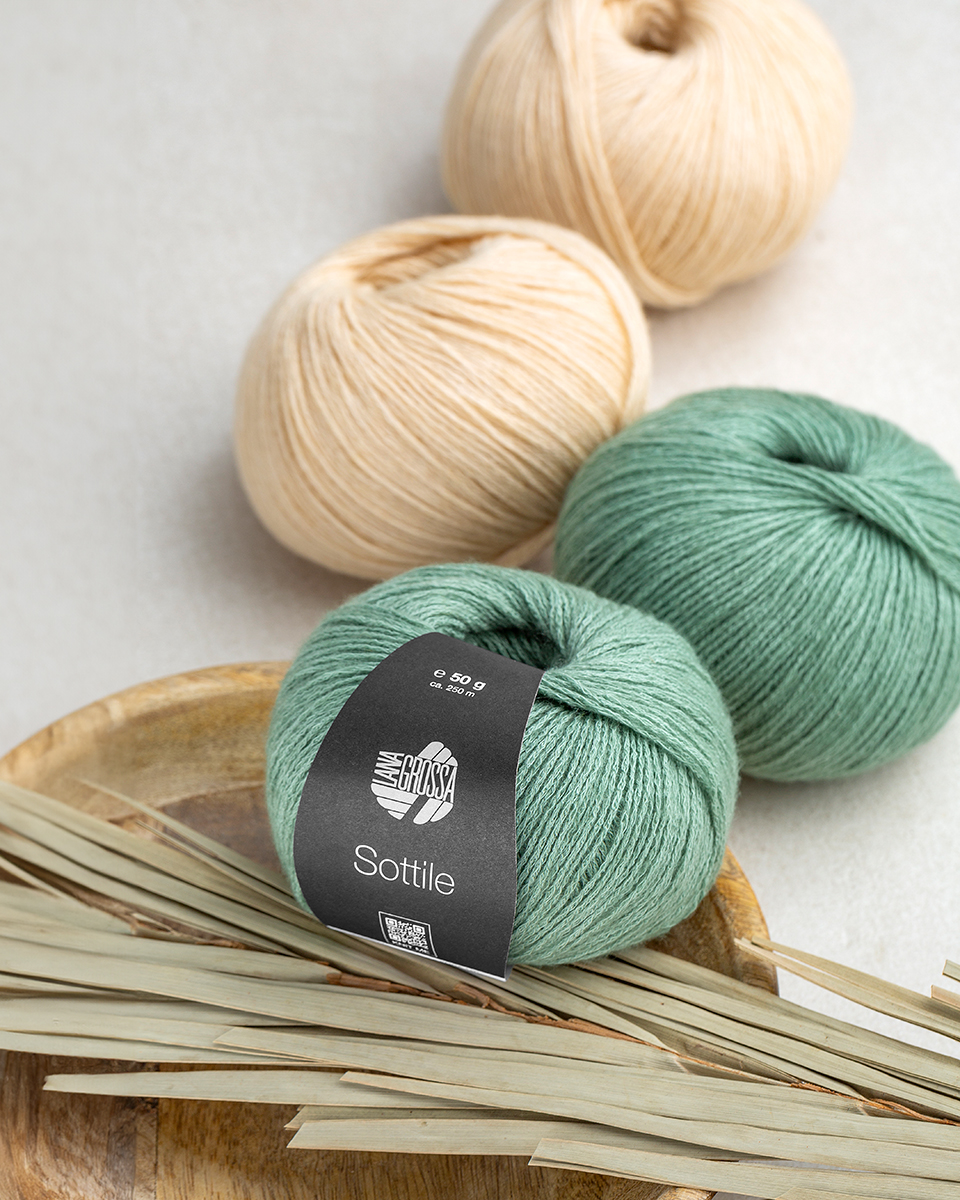 Sottile ist ein feines, glattes Sommergarn aus einer hochwertigen Baumwollmischung. Es überzeugt durch seinen kühlen Griff, ein gleichmäßiges Maschenbild und eine natürliche, elegante Ausstrahlung.