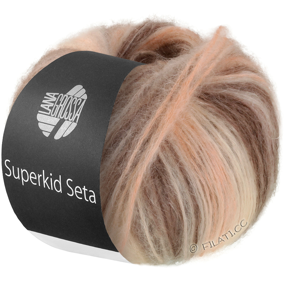 Superkid Seta ist ein edles Garn aus feinstem Superkid-Mohair und schimmernder Seide – leicht wie eine Wolke, zart im Griff und luxuriös im Look. Der feine Flausch und der dezente Glanz verleihen jedem Strickstück eine elegante, feminine Note.