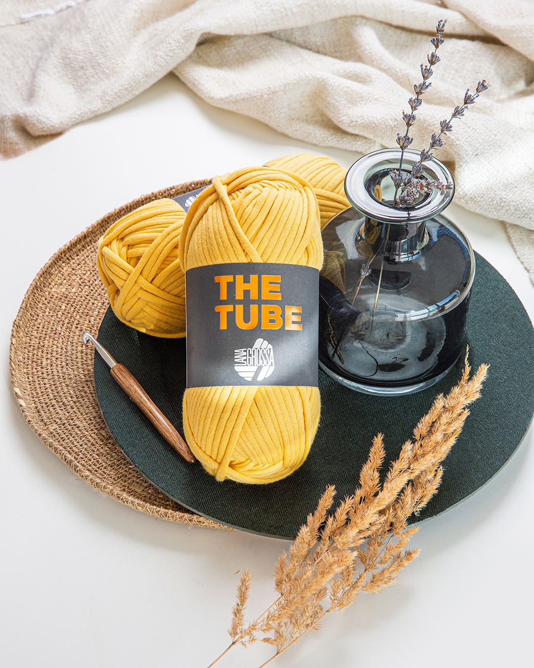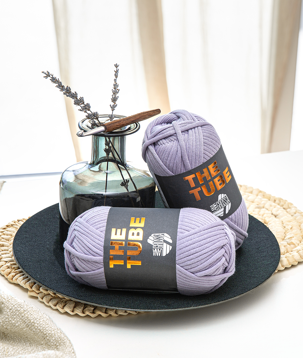 The Tube ist ein voluminöses Schlauchgarn mit modernem Look und weichem Griff. Die äußere Hülle aus Baumwolle umschließt einen leichten, luftigen Kern, wodurch das Garn besonders formstabil, leicht und zugleich angenehm soft ist. Ideal für Accessoires, Taschen, Home-Deko oder trendige Oversize-Modelle, die Struktur und Halt benötigen.