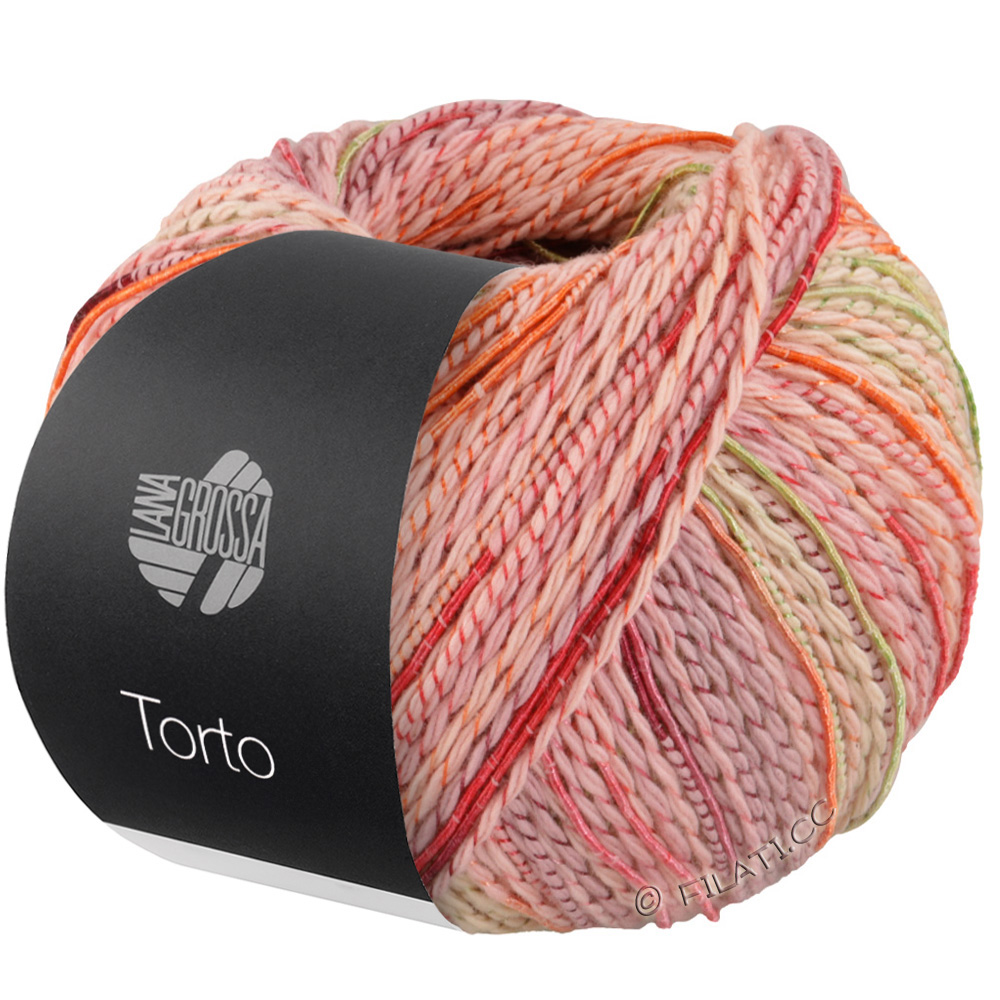 Torto ist ein kreatives Baumwoll-Effektgarn mit doppelt spannendem Farbeffekt: Der Grundfaden zeigt einen sanften Mélange-Farbverlauf, der zusätzlich unregelmäßig mit einem feinen, glänzenden Faden umwickelt ist. So entsteht ein lebendiges, strukturiertes Maschenbild mit dezentem Glanz und natürlicher Tiefe.