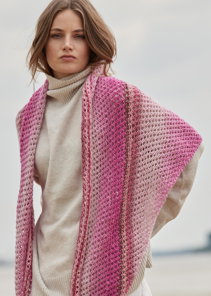 Lana Grossa-Qualität „Gomitolo Finito“ (100 % Schurwolle (Merino), LL = ca 520 m/200 g): 400 g Pink/Rosa/ Altrosa/Fuchsia/Bordeaux/Beige (Fb 567); Stricknadeln Nr 3,5.