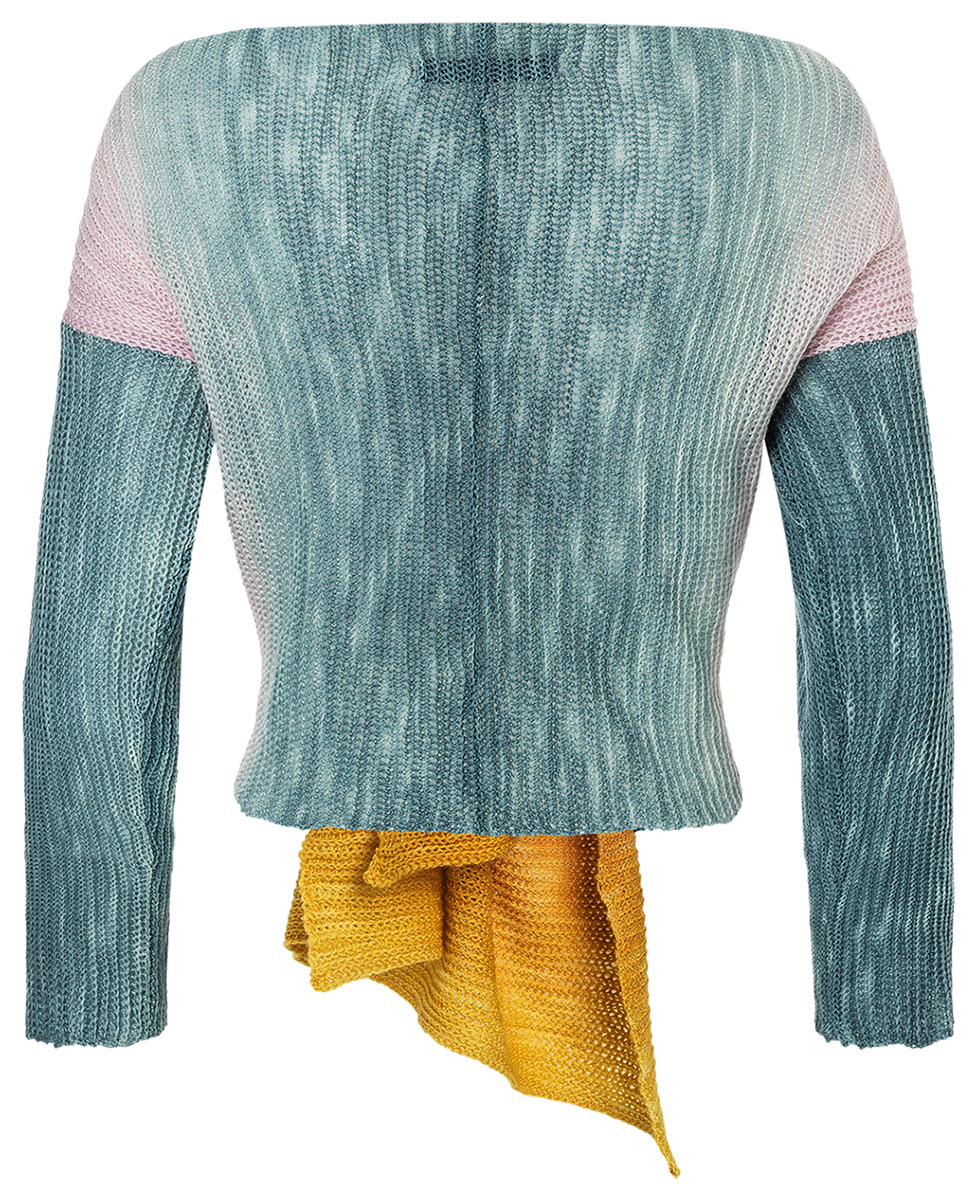 Feste Maschen im Reliefmuster sorgen beim gehäkelten Ärmelschal für standhaften Origami-Appeal. Clever: Für symmetrische Farbverläufe wird der Rücken in zwei Teilen gehäkelt und zum Schluss in der Mitte zusammengenäht.