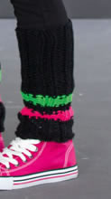 Zu Schwarz leuchtend neonbunte Streifen kombinieren? Ein genialer Farb-Thrill, mit dem du nicht zu übersehen bist! (Beinstulpen: Ø 18 cm, L = 27 cm. Armstulpen: Ø 15 cm, L = 16 cm.)