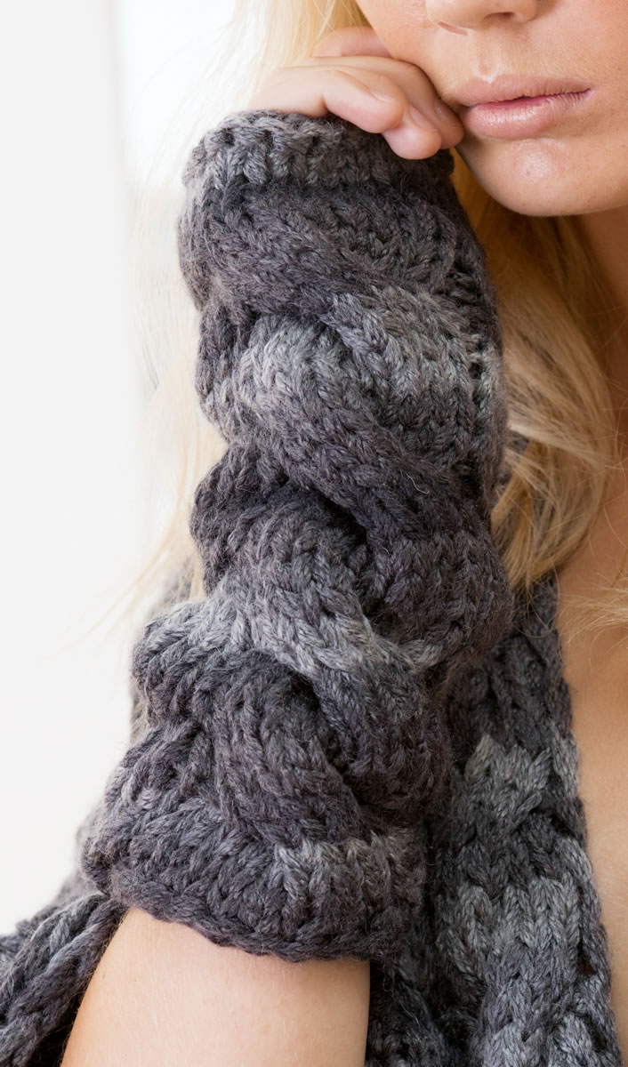 Lana Grossa-Qualität „Loop” (80 % Schurwolle (Merino), 20 % Polyamid, Laufänge = ca. 50 m/50 g): ca. 150 g Anthrazit/ Dunkelgrau (Fb. 9); Stricknadeln Nr. 8, 10 und 12.