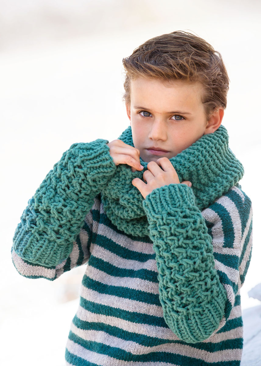 Lana Grossa Mille II (50% Schurwolle, 50% Polyacryl, Lauflänge 55 m/50 g), 100 g Jadegrün (Fb 87); 1 Spiel Stricknadeln Nr. 8.