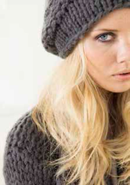 Lana Grossa-Qualität „Molle” (40 % Polyacryl, 30 % Mohair, 30 % Polyamid, Laufänge = ca. 60 m/100 g): ca. 100 g Taupe (Fb. 11); Spielstricknadeln Nr. 10 und 12.