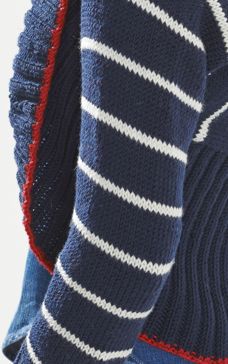 So schick und sweet ist Strick. Uns verzaubert die feminin gefittete Jacke mit den Akzente setzenden Streifen.