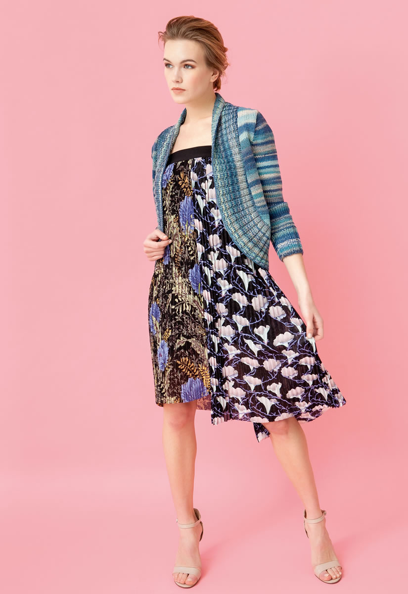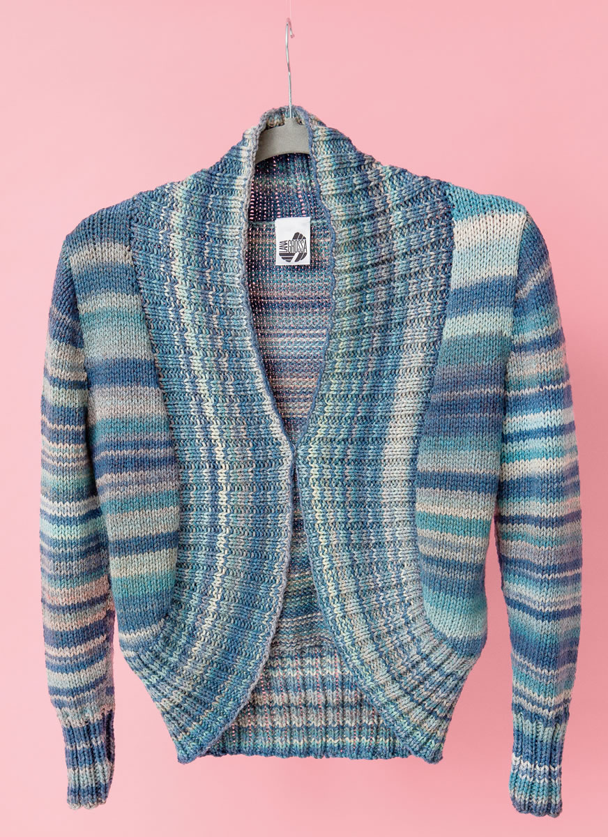 Lana Grossa-Qualität „Multi“ (45 % Baumwolle, 45 % Acryl, 10 % Polyamid, LL = ca. 100 m /50 g) 400 (450) 500 g Türkisblau/Enzianblau/Terrabraun/Schokobraun (Fb 9). Strick-Nd Nr 5,5, 1 lange Rundstrick-Nd Nr 5,5.