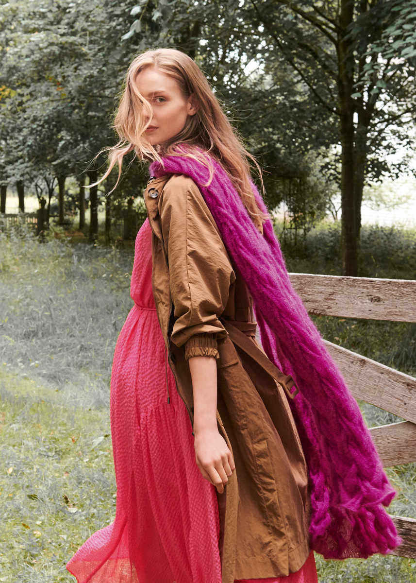 Lana Grossa „Silkhair“ (70% Mohair (Superkid), 30% Seide; Lauflänge ca. 210 m/25 g), 250 g in Magnolie (Fb 75); Stricknadeln Nr. 5, Hilfsnadel.
