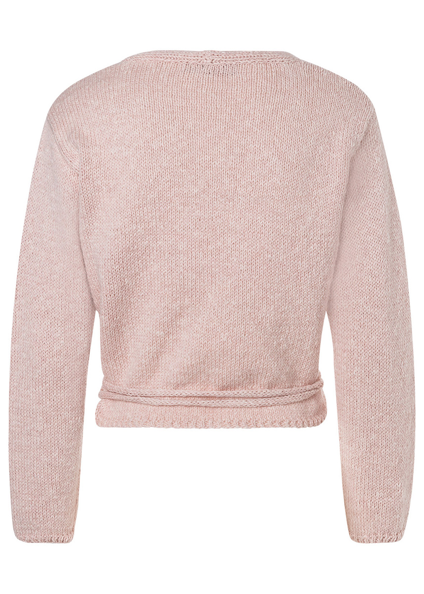 Lana Grossa Cara (57% (Baby) Alpaca, 33% Baumwolle, 10% Schurwolle (Merino), Lauflänge 120 m/50 g), 400 (450 – 450) g Rosé (Fb 7); Stricknadeln Nr. 4,5, 1 Strickliesel von PRYM.