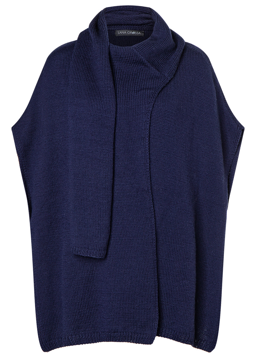 Lana Grossa Cool Wool Cashmere (90% Schurwolle (Merino extrafine), 10% Kaschmir, Lauflänge 160 m/50 g), 550 (600 – 650) g Marine (Fb 18); 1 Rundstricknadel Nr. 3,5, 80 cm lang.
