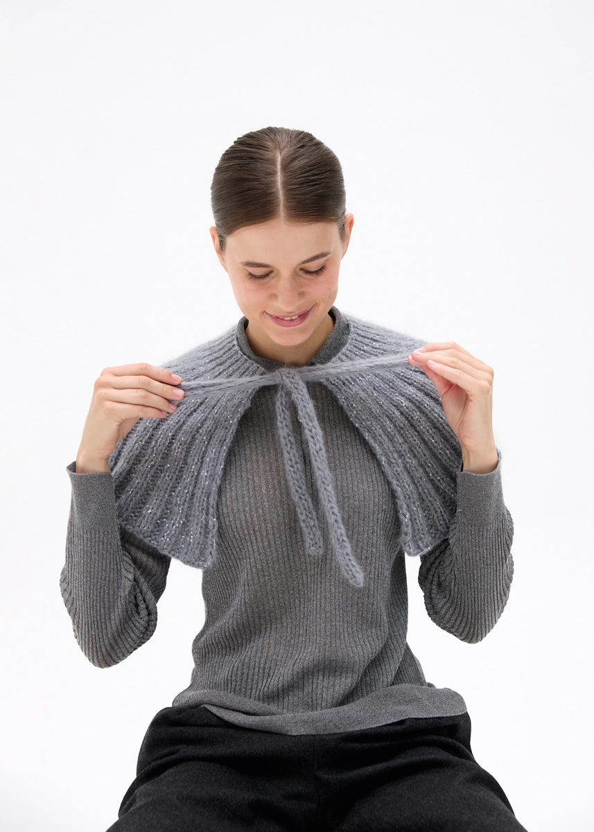 Hinweis: Das Cape wird mit doppeltem Faden mit je einem Faden jeder Qualität gestrickt.