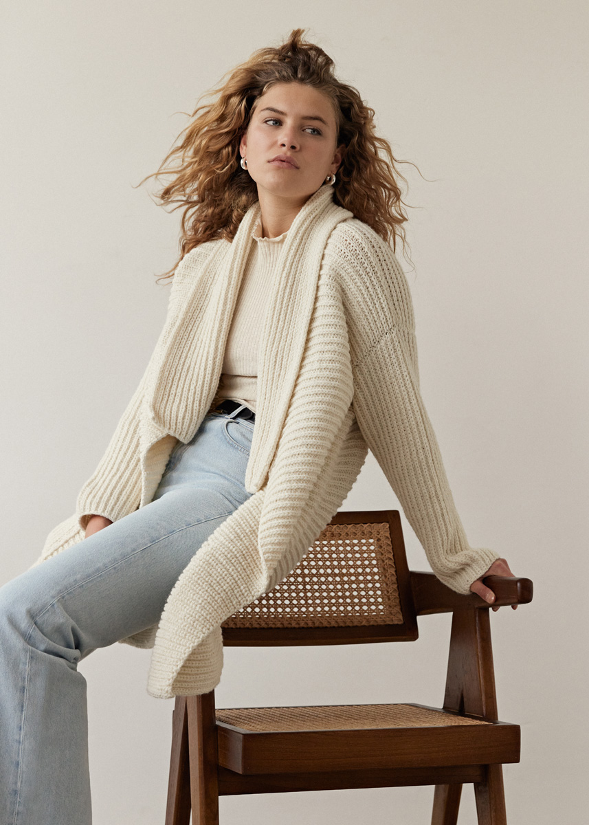 Lana Grossa Alta Moda Alpaca (90% Alpaka (Baby), 5% Schurwolle (Merino), 5% Polyamid, Lauflänge 140 m/50 g), 850 (900 – 950) g Rohweiß (Fb. 14); Stricknadeln Nr. 4,5 und 5,5.