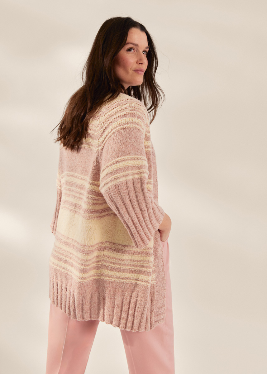 Dieser Cardigan wird glatt rechts und glatt links gestrickt. Weitere Pluspunkte: die schenkellange Wohlfühlform und schmeichelnde Raglanärmel (Anleitung bis Größe 48/50).