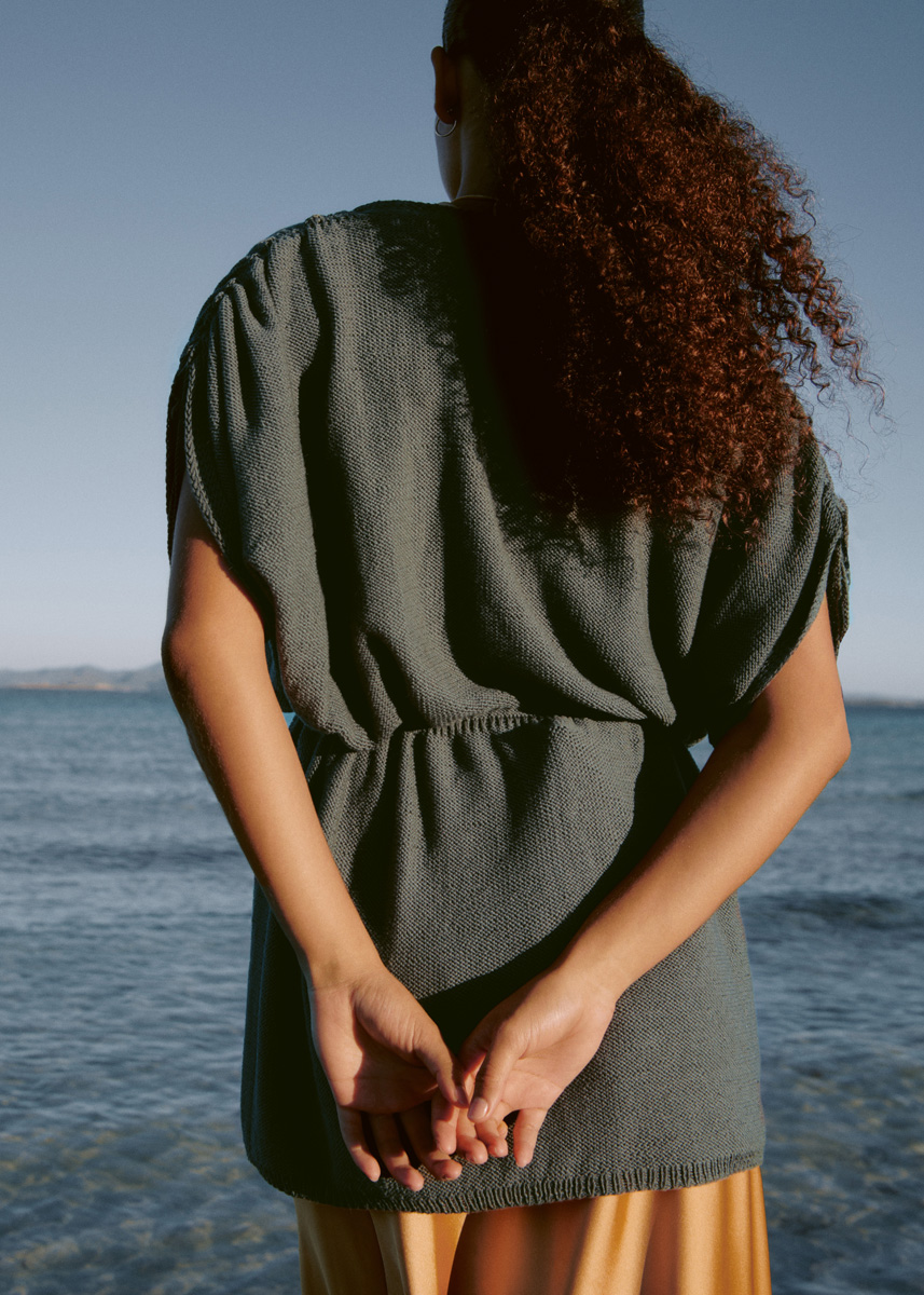 Oversized und mit gerafften Schultern ausgestattet, erinnert diese Jacke an die Looks der Achtziger. Das glatt rechts gestrickte Modell besteht aus einem feinen, durchgefärbten Merino-Gemisch (neu), das intensive Töne liefert.