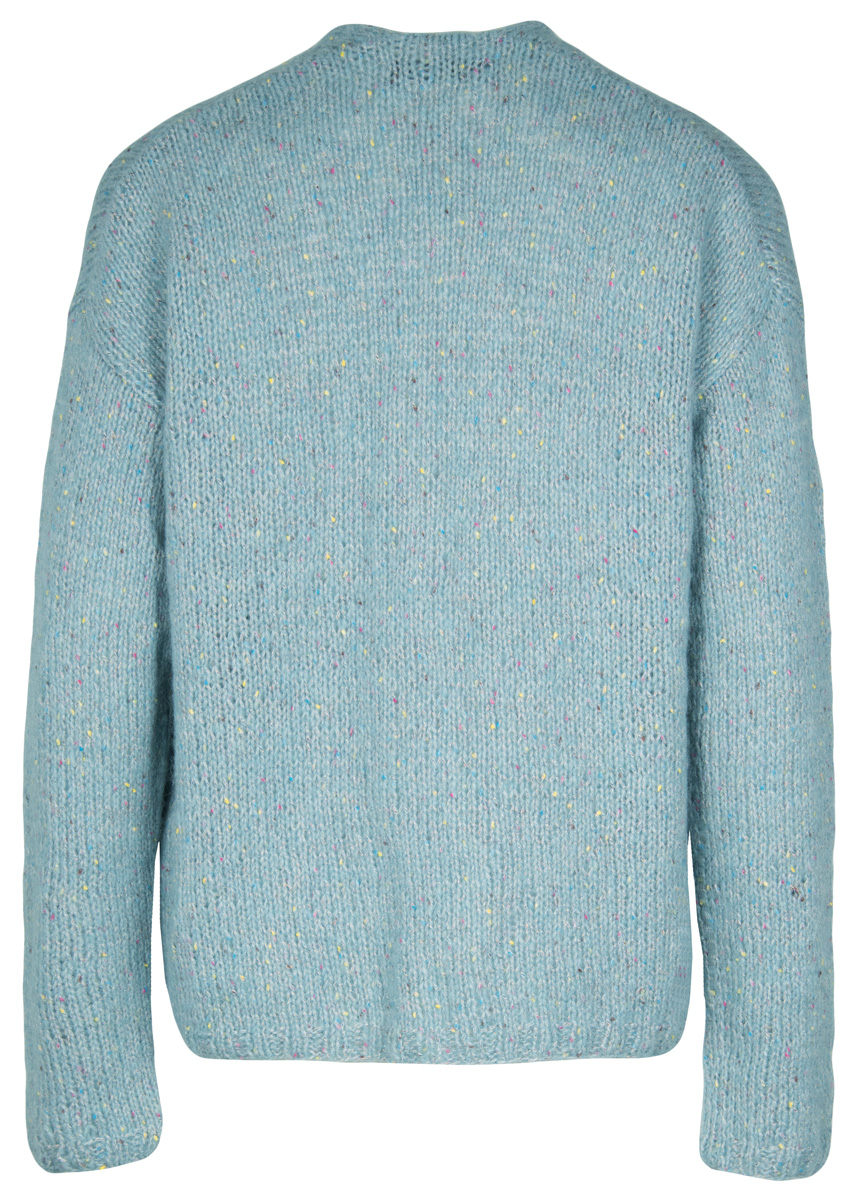 Lana Grossa-Qualität „Lala Berlin Tweedy” (33 % (Baby) Alpaka, 31 % Polyamid, 30 % Baumwolle, 6 % Schurwolle (Merino), LL = ca. 125 m/50 g): ca. 350 (400 – 450) g Mint (Fb. 1); Stricknadeln Nr. 5 und 5,5.
