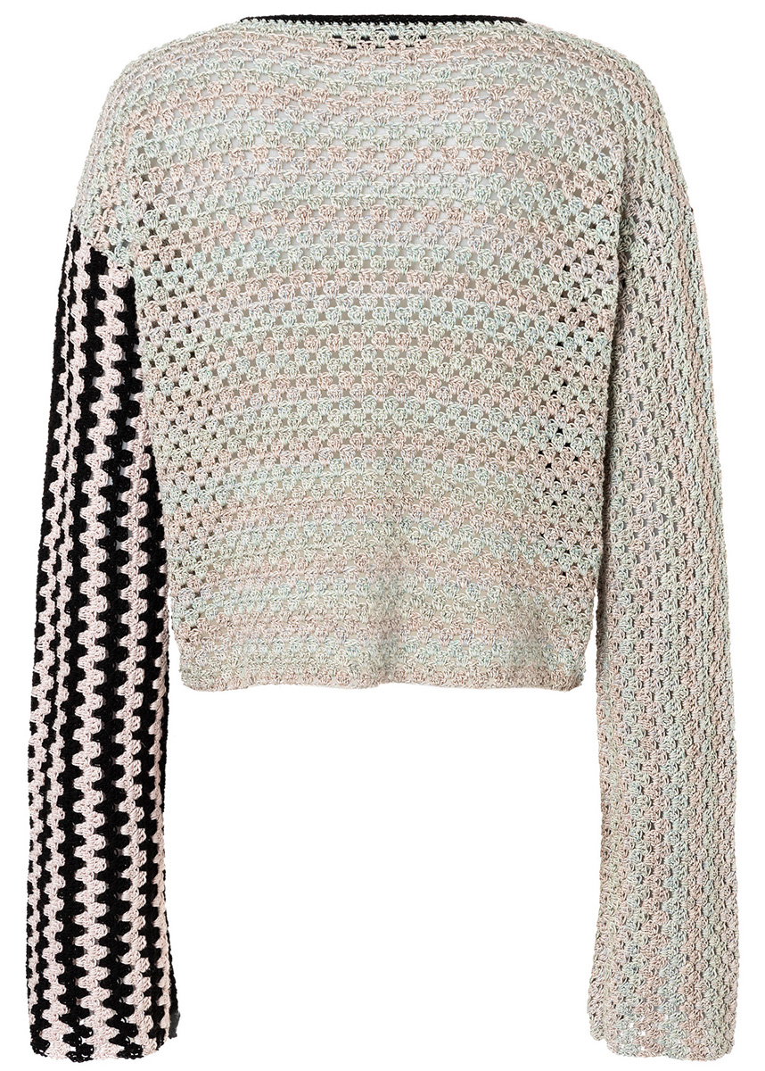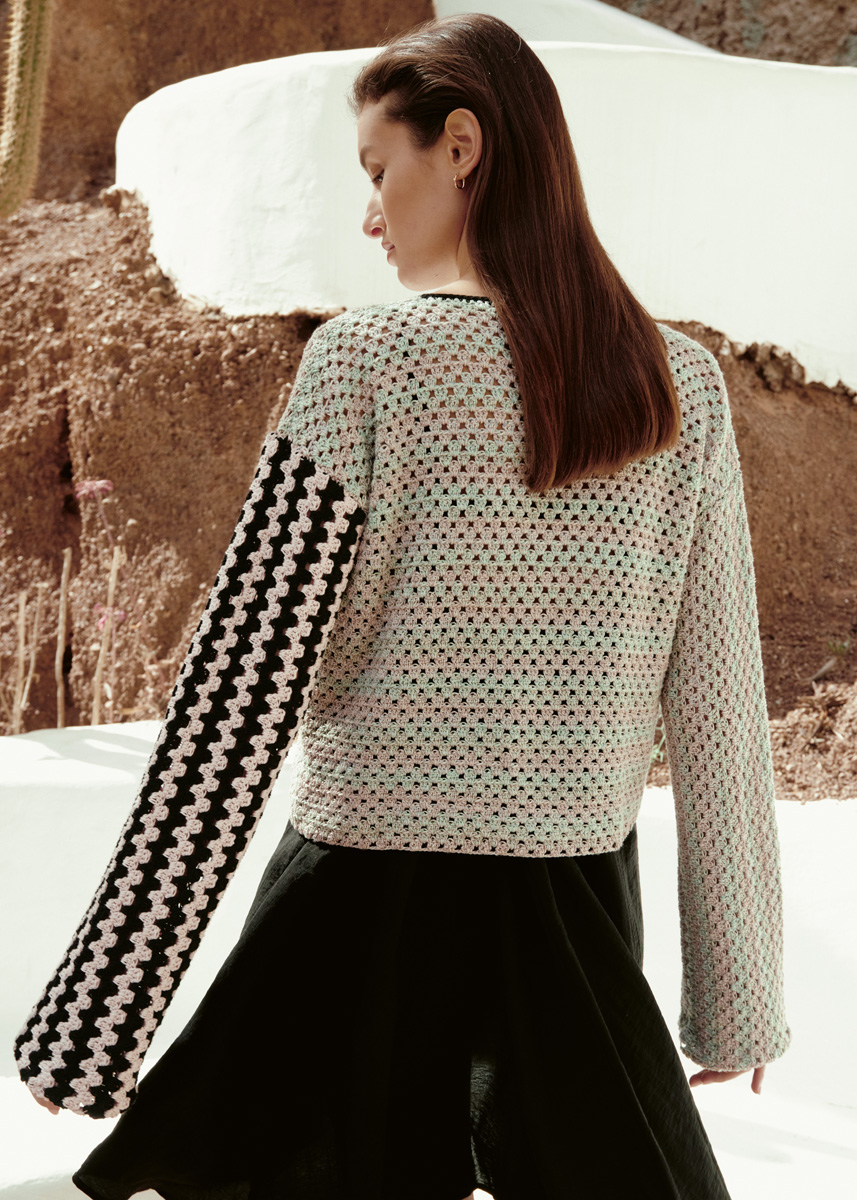 Melierte und unifarbene Garne wurden hier im selben Muster verarbeitet. Der Effekt: harmonische Strukturen, gekrönt von einem spannenden Farbenspiel.