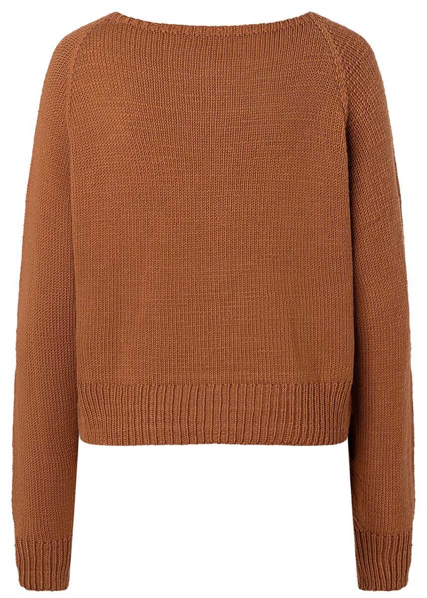 Lana Grossa Cool Wool (100% Schurwolle (Merino extrafine), Lauflänge 160 m / 50 g): 250 (300 - 350 - 400 - 450 - 500) g Karamell (Fb. 2054); Stricknadeln Nr. 3 und 3,5, 80 - 100 cm lang für den Körper; kurze Rundstricknadel oder Nadelspiel Nr. 3 und 3,5 für die Ärmel; Maschenraffer oder Seile, um Maschen stillzulegen; 13 Maschenmarkierer; 13 Knöpfe (10 - 15 mm); Wollnadel; Schere.