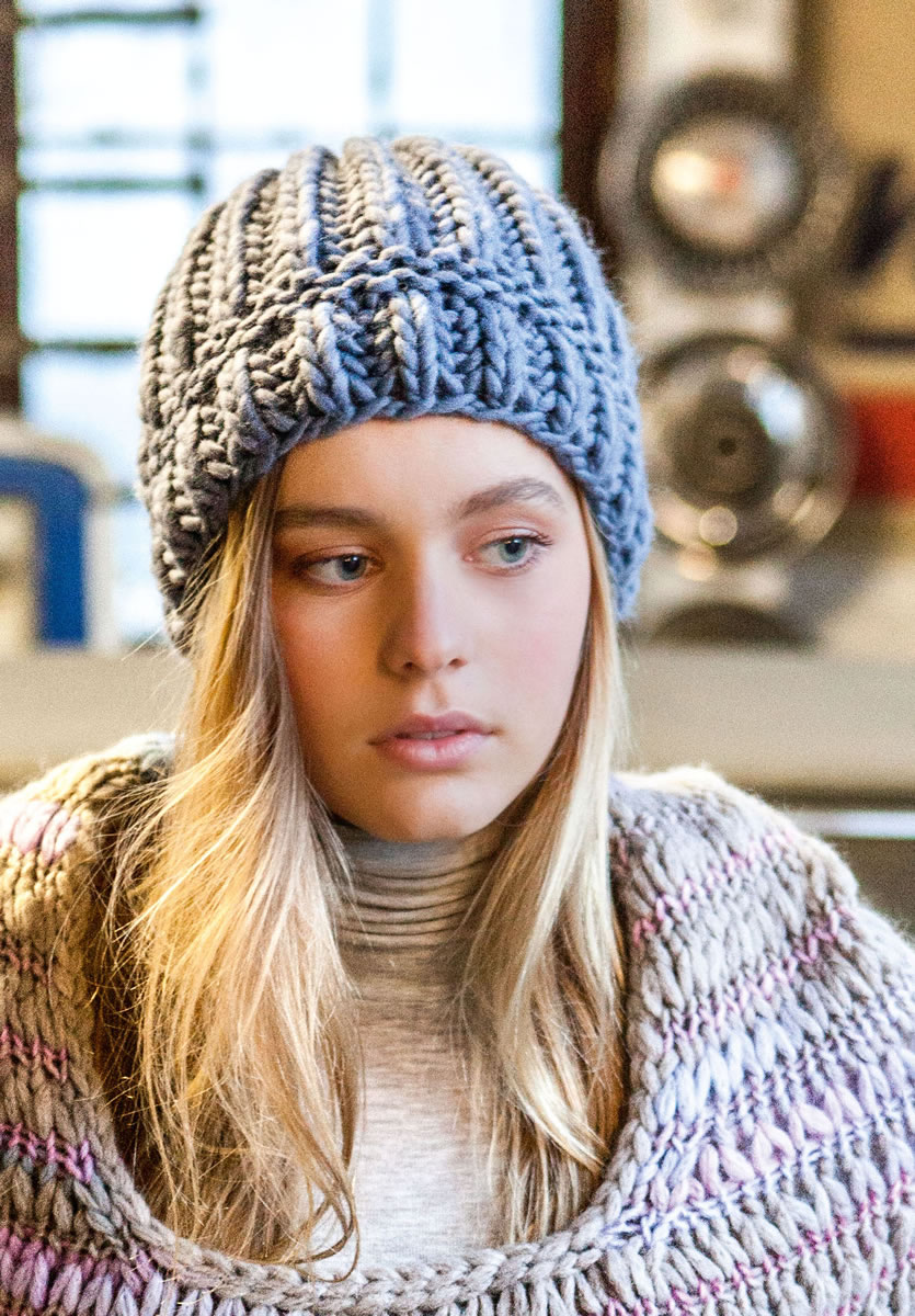 Lana Grossa-Qualität „Lei“ (100 % Schurwolle (Merino), Lauflänge ca. 40 m/50 g): ca. 100 (150) g Hellgrau meliert (Fb. 31) oder Taubenblau (Fb. 80); Stricknadeln Nr. 9, 1 Wollnadel von Lana Grossa.