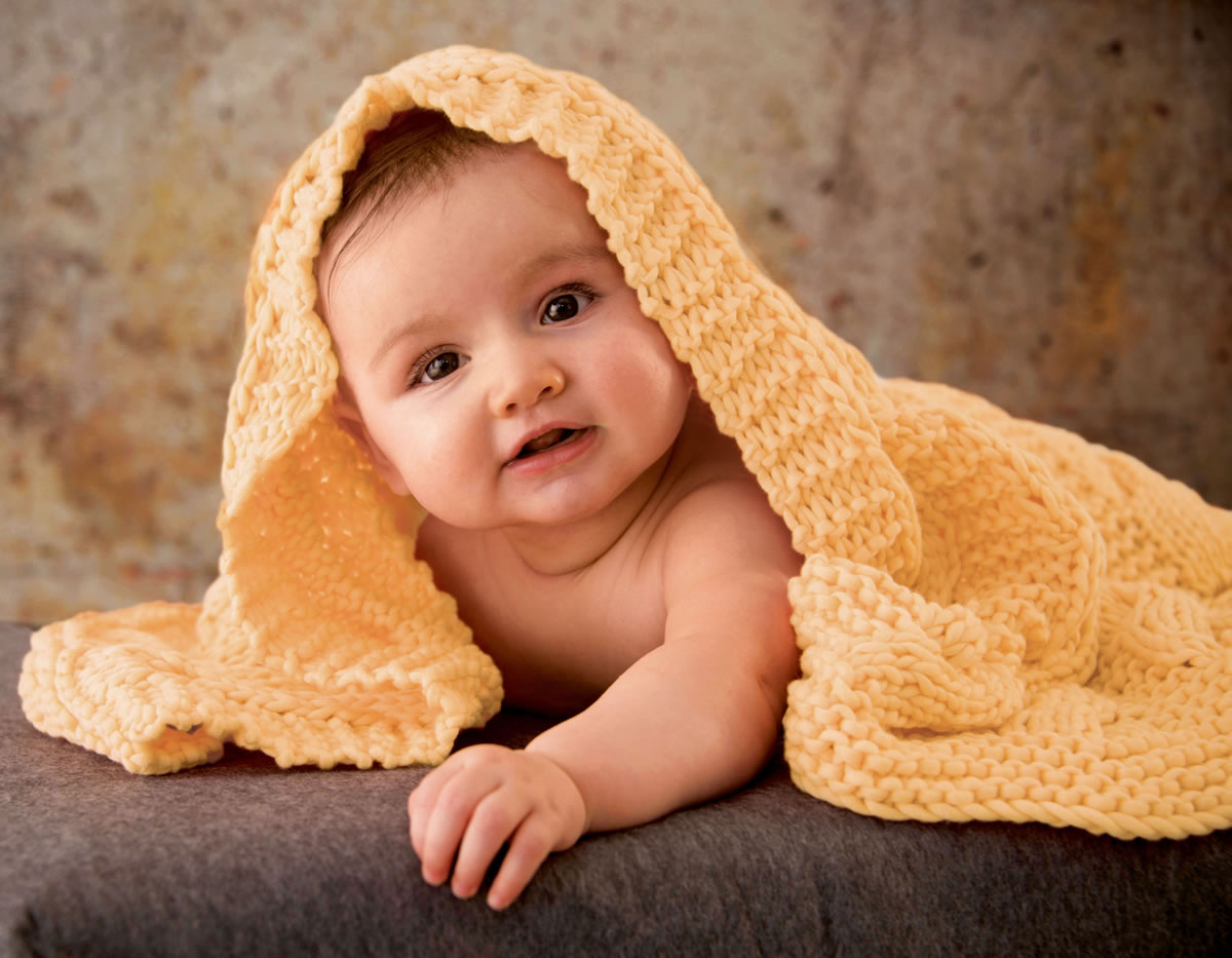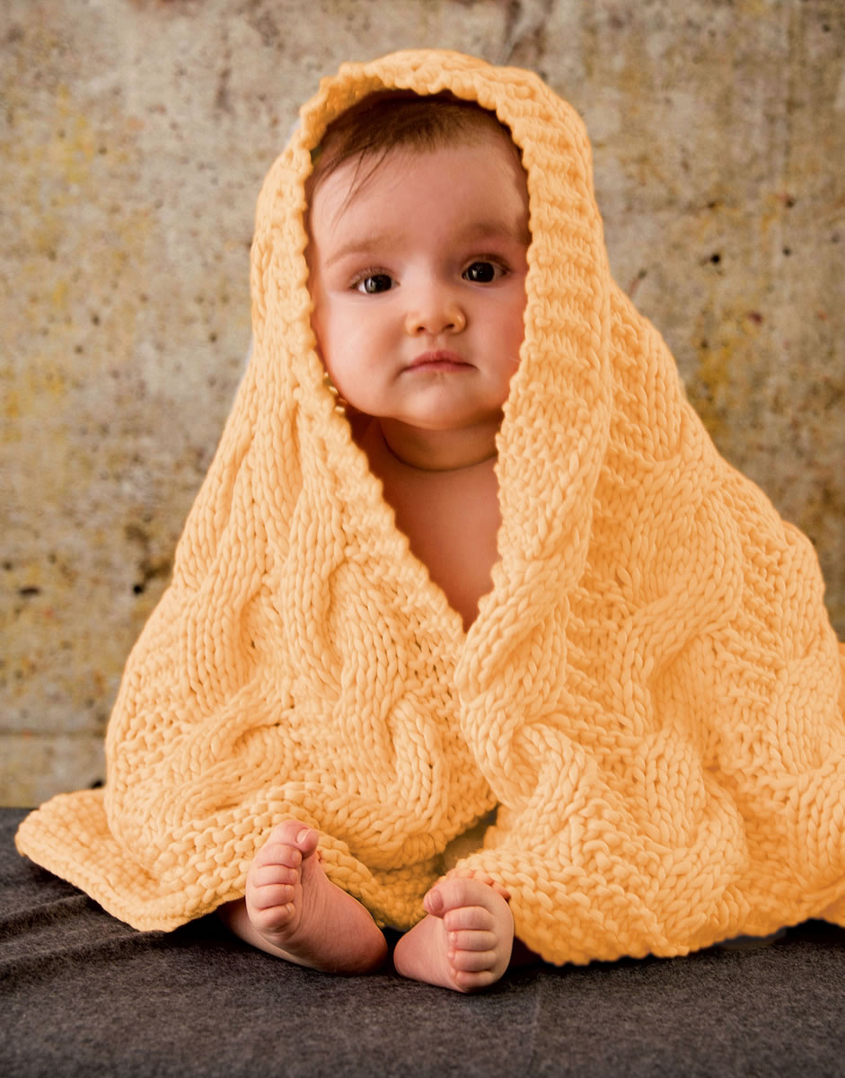Kuckuck!? Da bist du ja! Die Kuscheldecke macht ihrem Namen alle Ehre, denn sie hält kleine Nackedeis wunderbar warm. Genauso Bommelmütze und Zopfmusterjacke, die aus einem „All-Seasons“-Garn gestrickt sind. Durch den Anteil von SeaCell-Fasern wird Baby’s Haut so ganz nebenbei und unter anderem mit feuchtigkeitsspendenden Wirkstoffen verwöhnt. Ein toller Nebeneffekt.