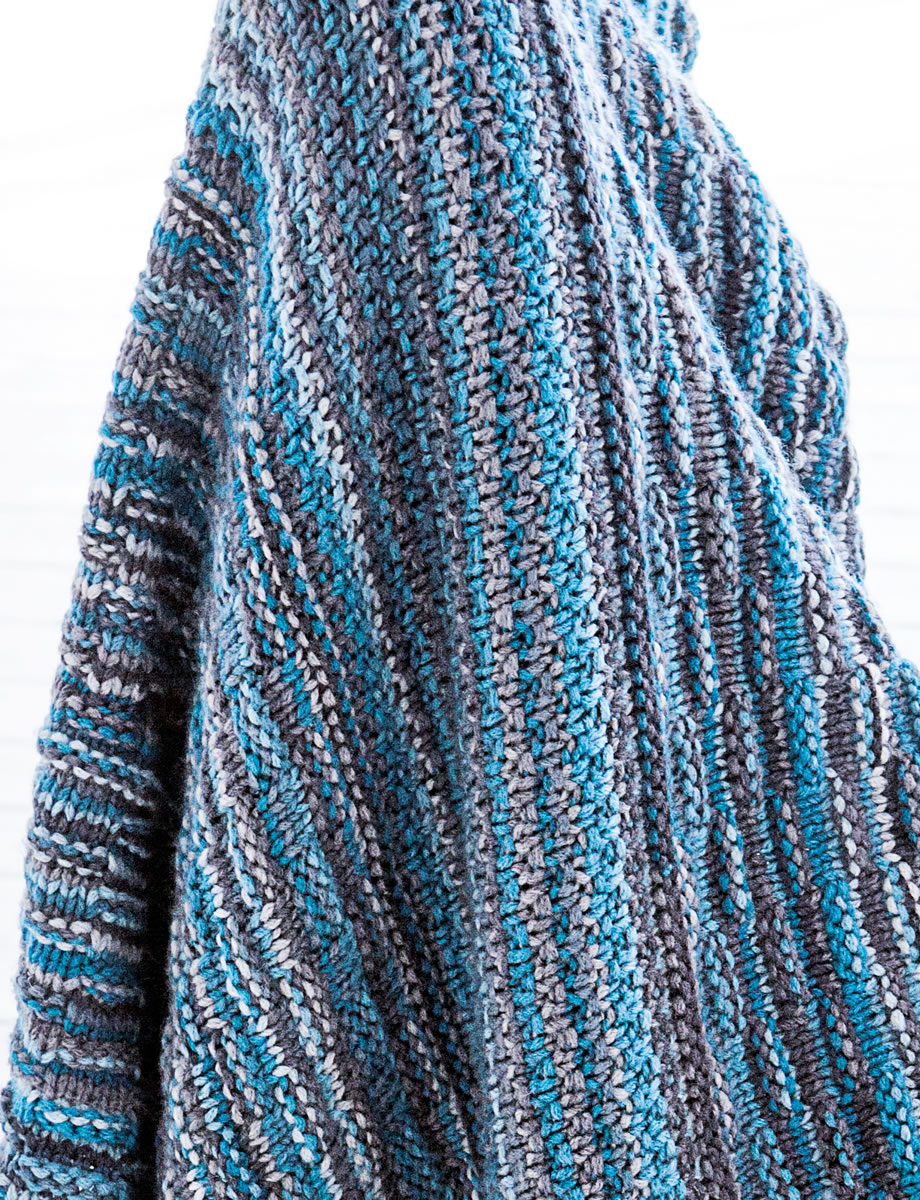 Holt die See ins Haus: Das 160 x 130 Zentimeter große Plaid wird aus Garn im Farbverlauf und im Rechts-Links-Muster gestrickt. Easy!