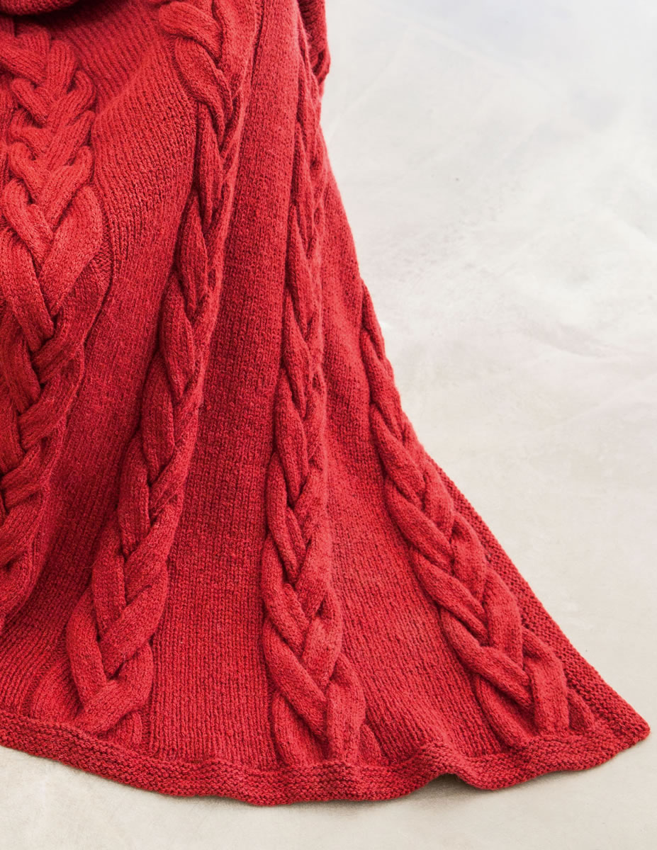 Lana Grossa-Qualität „Alta Moda Alpaca” (90 % (Baby) Alpaka, 5 % Schurwolle (Merino), 5 % Polyamid, LL = ca. 140 m/50 g): ca. 1250 g Dunkelrot meliert (Fb. 40); 1 Rundstricknadel Nr. 6, 120 cm lang.
