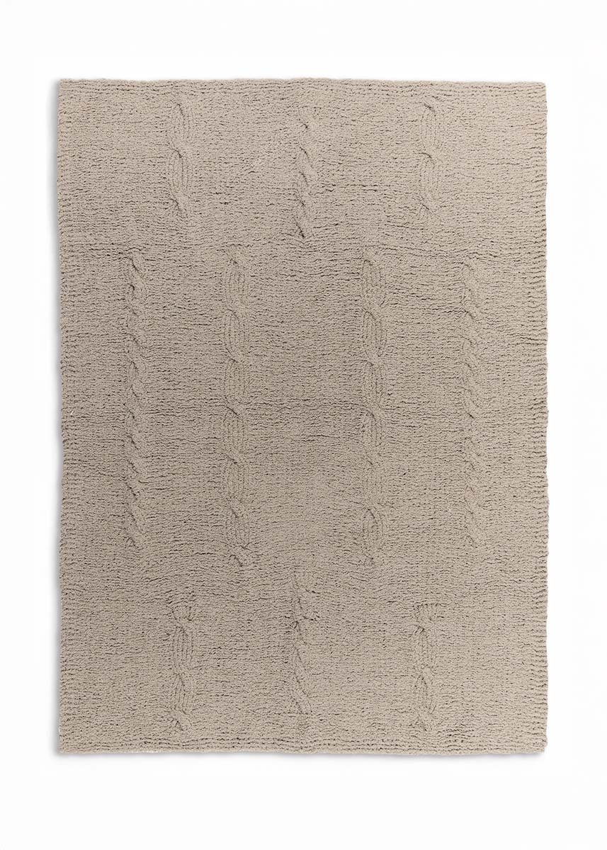 Lana Grossa Leggerissimo (100% Polyamid; LL = 150 m/50 g): 200 g Braunbeige (Fb. 15); eine Rundstricknadel 4,5 mm; eine Zopfnadel.