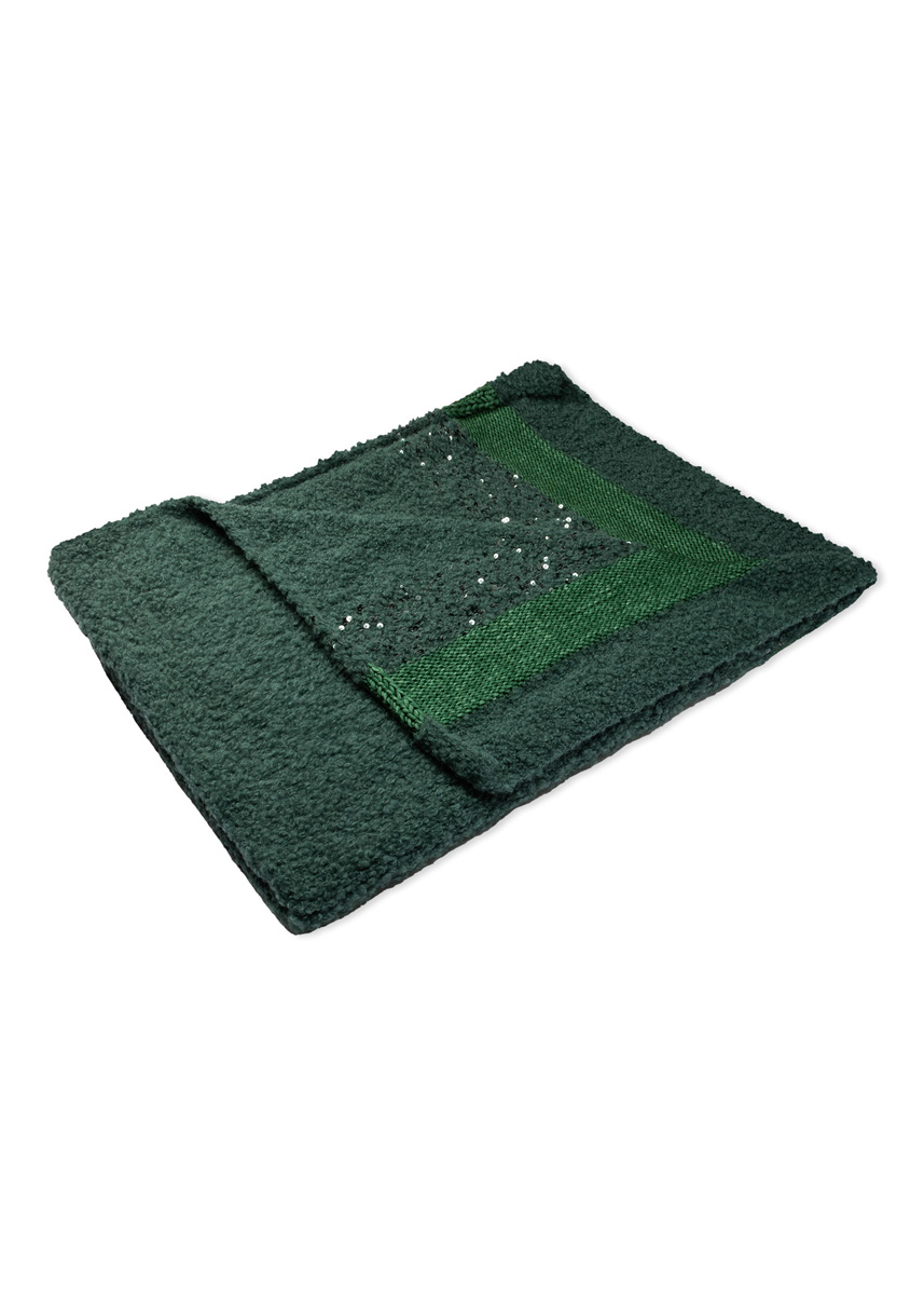 Lana Grossa-Qualität „Orsetto” (60 % Schurwolle (Merino), 40 % Alpaka (superfine), LL = ca. 75 m/50 g): ca. 600 g Petrolgrün (Fb. 9), Lana Grossa-Qualität „Vintage Superchunky” (100 % Schurwolle (Merino), LL = ca. 80 m/100 g): ca. 200 g Opalgrün (Fb. 518) und Lana Grossa-Qualität „Cosmo” (100 % Baumwolle (plus Pailletten), LL = ca. 260 m/100 g): ca. 100 g Grau (Fb. 3); 1 Rundstricknadel Nr. 6, 120 cm lang.