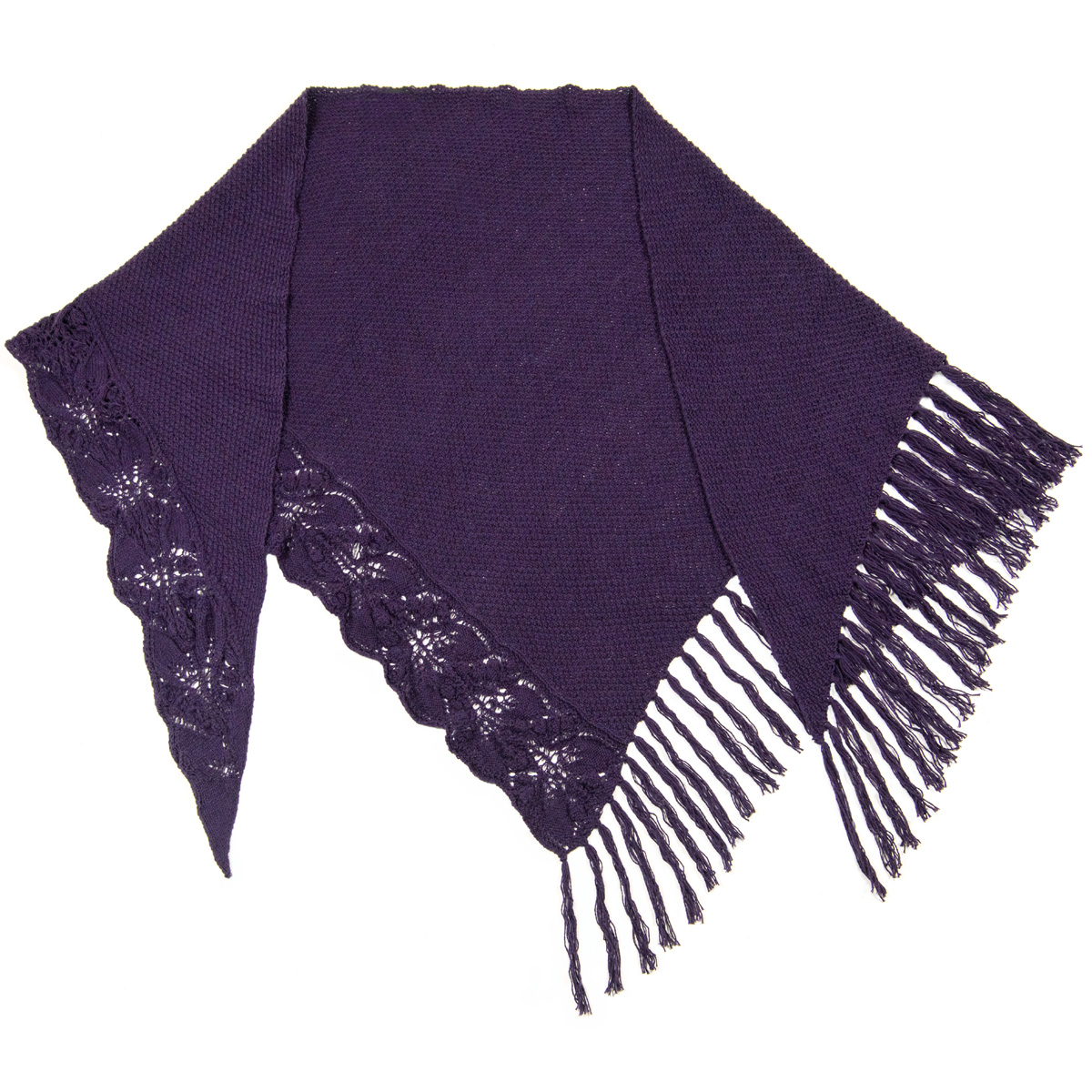 Lana Grossa Cashmere Love (50% Kaschmir, 50% Baumwolle, Lauflänge 112 m/25 g), 14a: 450 g Nougat (Fb 1), 14b: 300 g Aubergine (Fb 5); 1 Rundstricknadel Nr. 3,5, 100 cm lang, 1 Häkelnadel Nr. 4 zum Einziehen der Fransen.